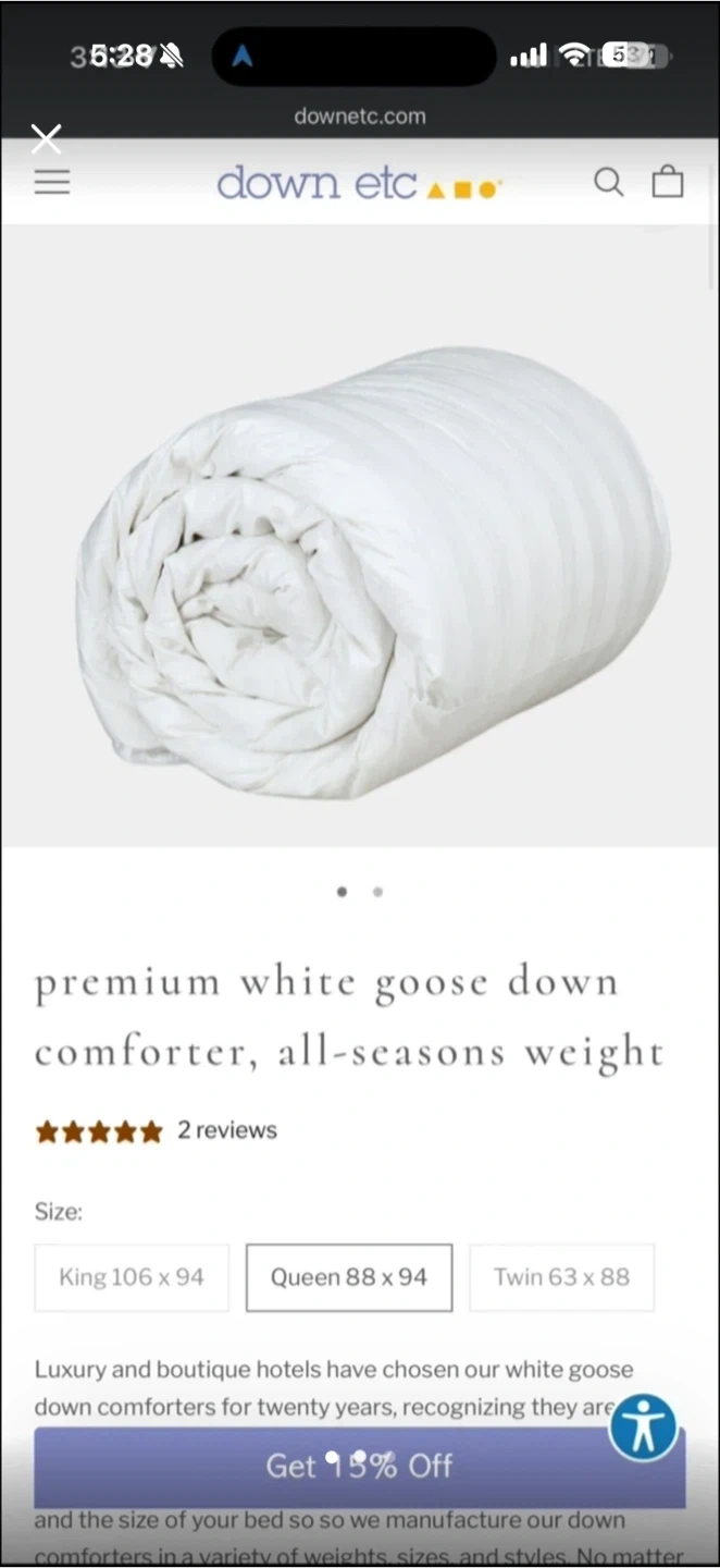 Selling a Down Etc premium white goose down comforter! in good condition. Perfect for all-seasons