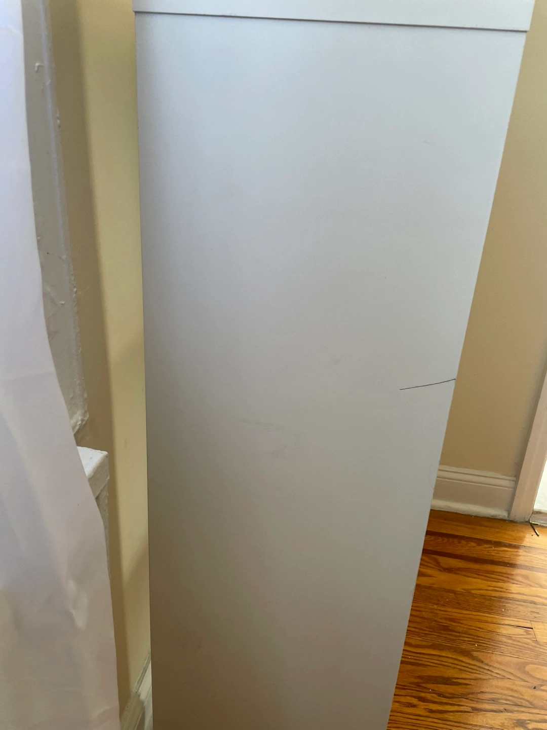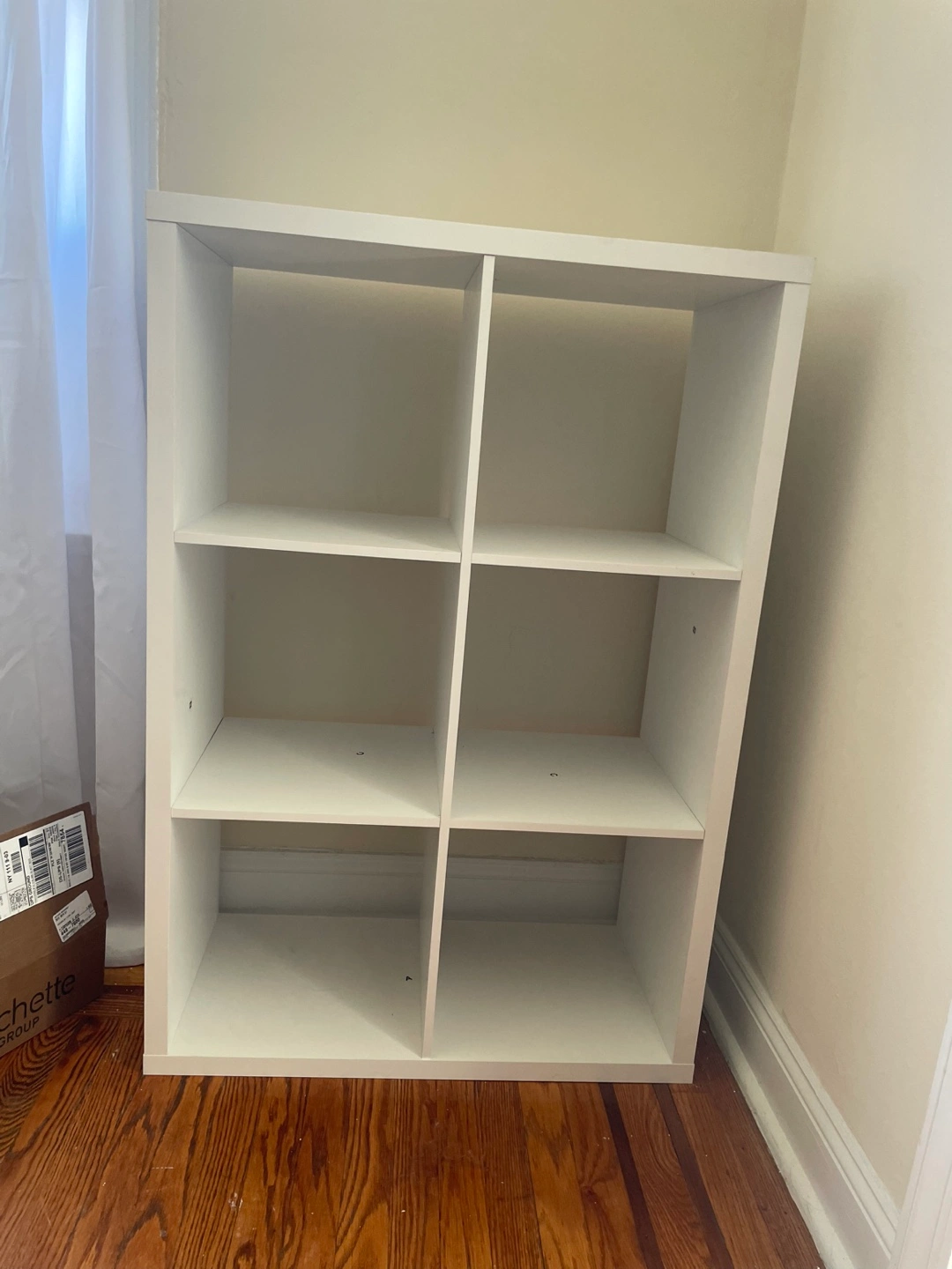 Selling a white shelf unit. It has some minor scratches on the side, but is otherwise in good condition. Perfect for organizing books or displaying items! Pick up only