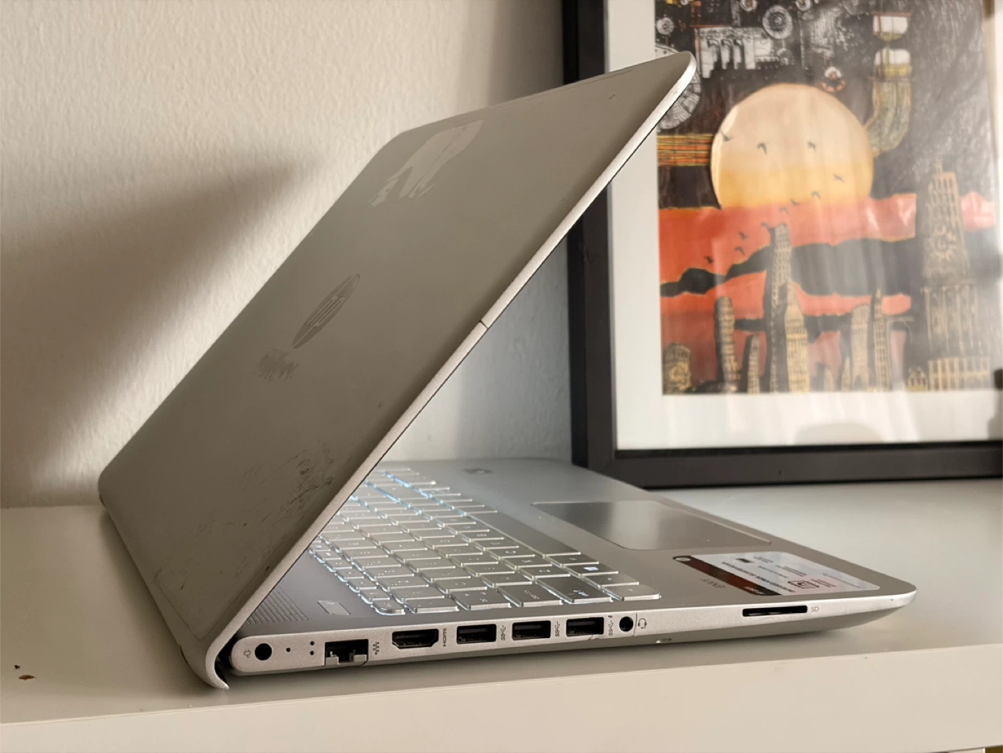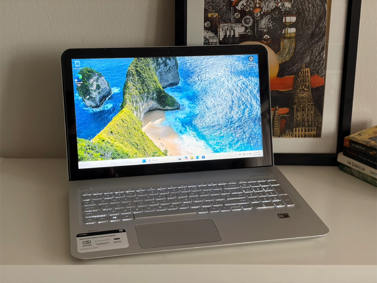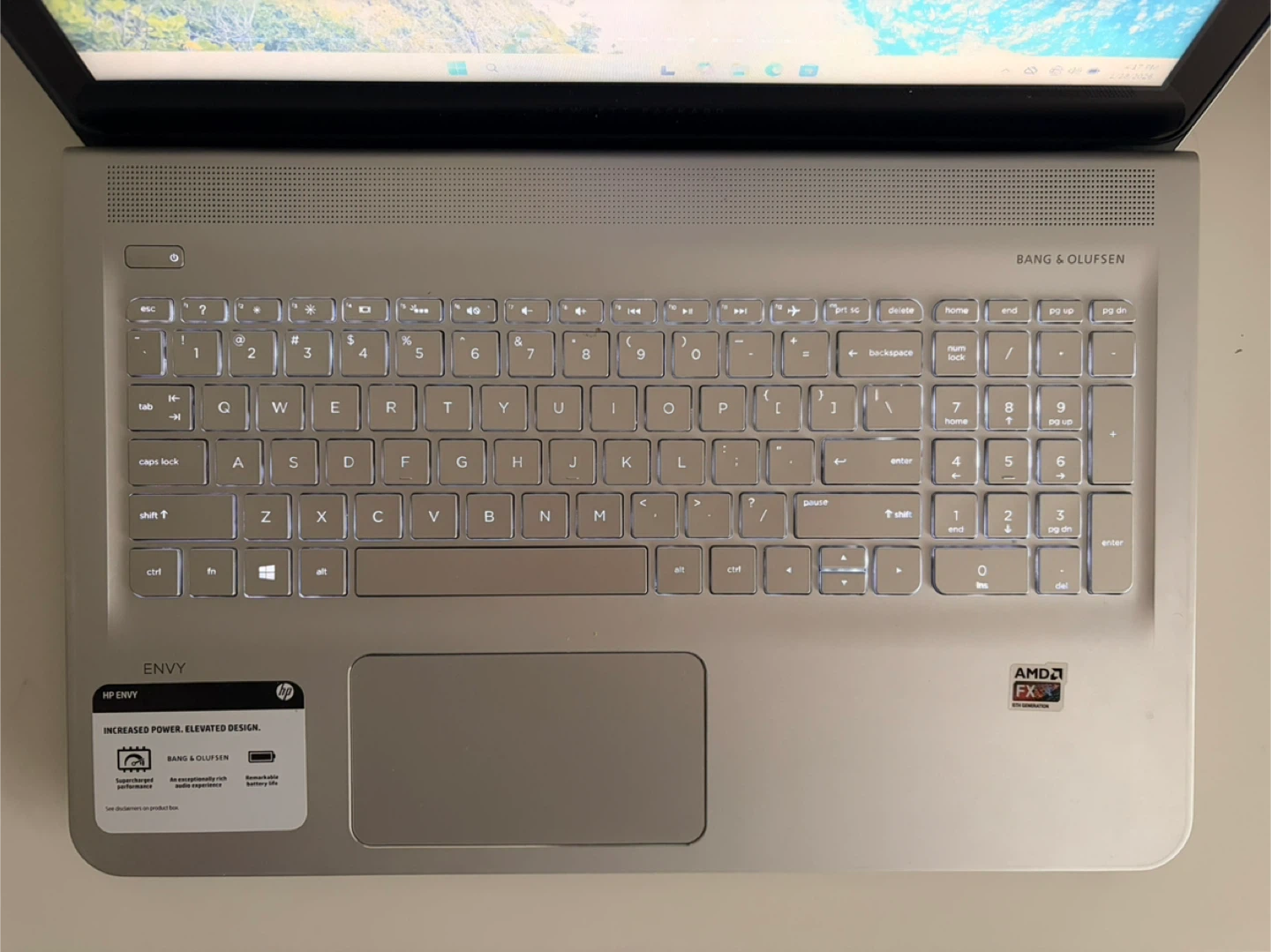This HP Envy laptop features a backlit keyboard and Bang & Olufsen audio. It has several ports including HDMI and USB. The chassis is silver. Perfect for office tasks, remote work, school, and media. • AMD FX-8800P (up to 4.2Ghz, 4 Cores) • 6GB RAM • 15.6” FullHD IPS Touchscreen • 1TB Storage • AMD Radeon R7 Graphics Charger included Battery life: about 2h