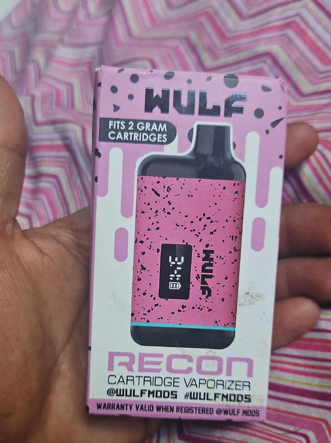 Selling a WULF Recon cartridge vaporizer. It fits 2 gram cartridges and is in excellent condition. The design is a cool pink with black specks. Perfect for anyone looking for a reliable and stylish vaporizer!