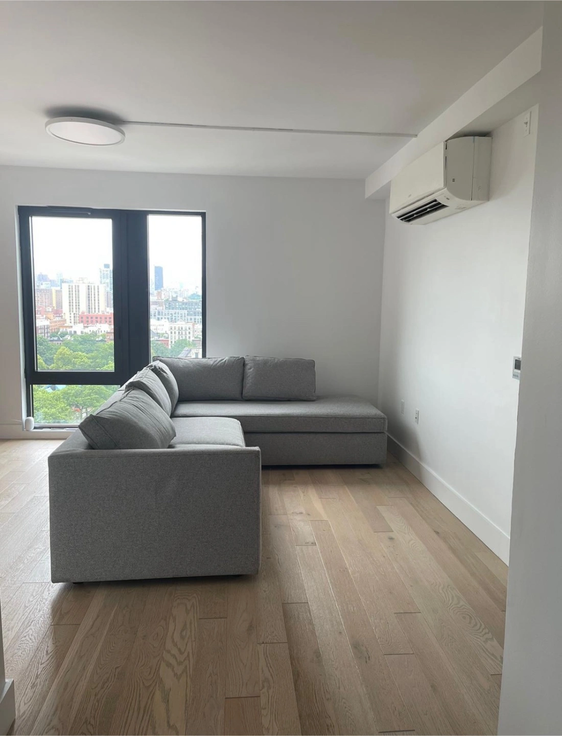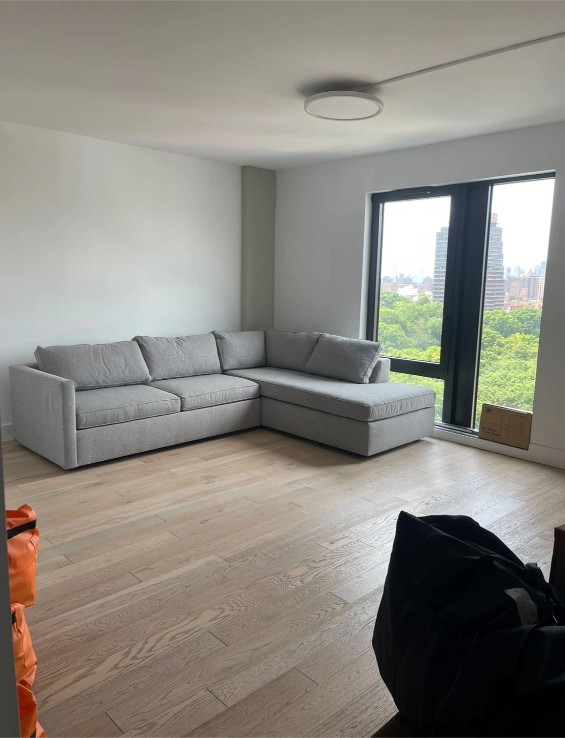 Only 1 year old. Always used with a cover. Brand new mattress (never used). Harris 114" Right Multi-Seat Sleeper Sectional w/ Bumper Chaise PCT Storm Gray.