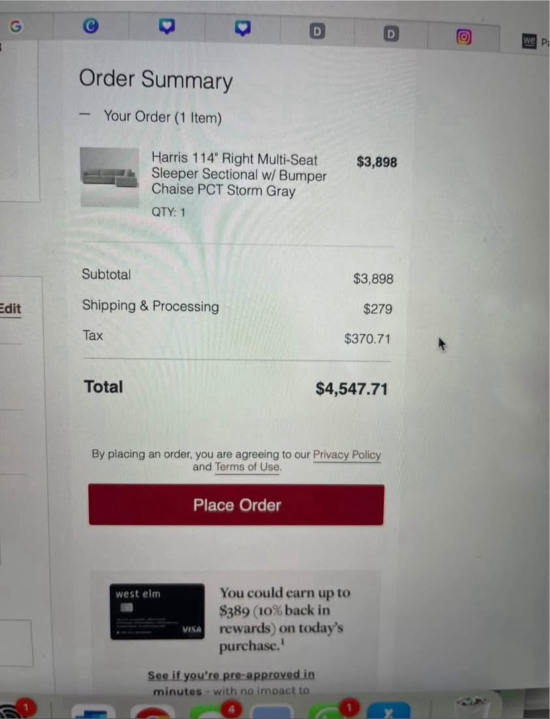 West Elm Harris 114" Right Multi-Seat Sleeper Sectional