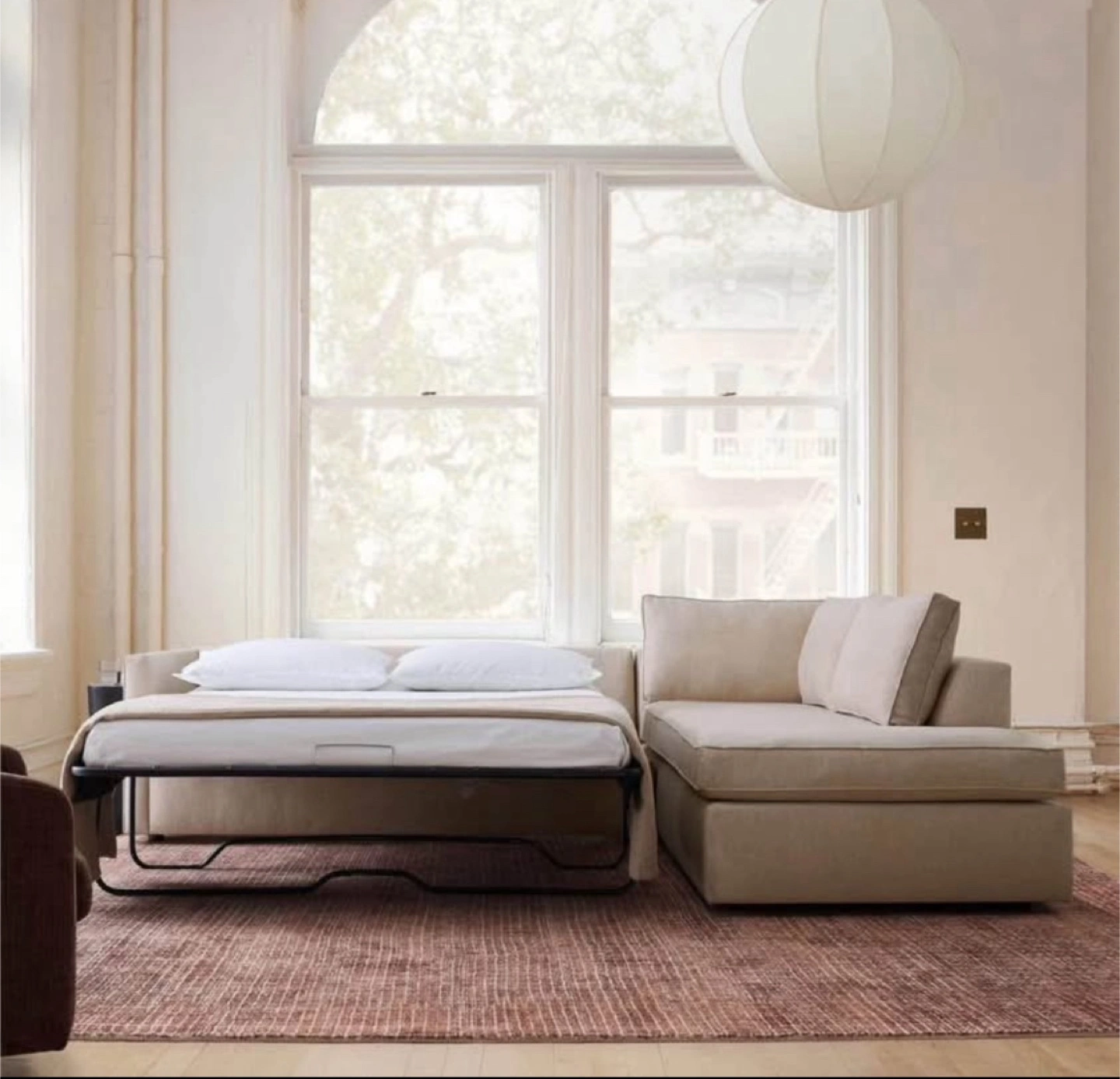 Sofa folds out to reveal a Queen-sized mattress.