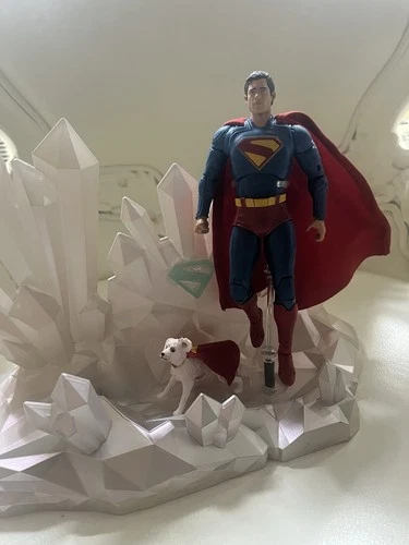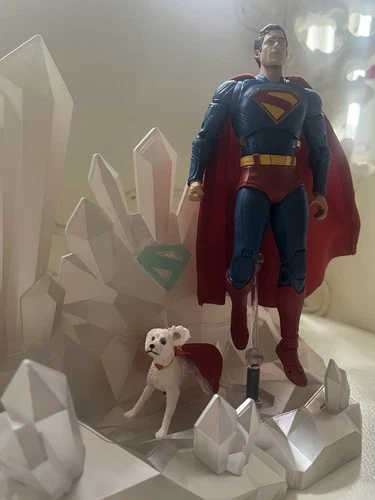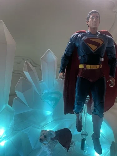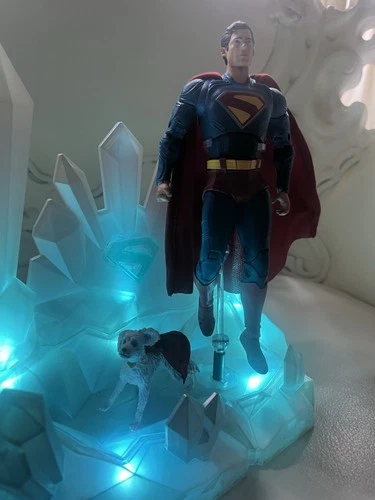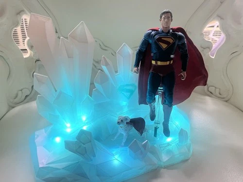 This is a custom-made LED stand for displaying Superman action figures, designed to look like the Fortress of Solitude. It illuminates for a striking visual display. Perfect for collectors and fans of the Superman franchise. McFarlane action figures are not included.