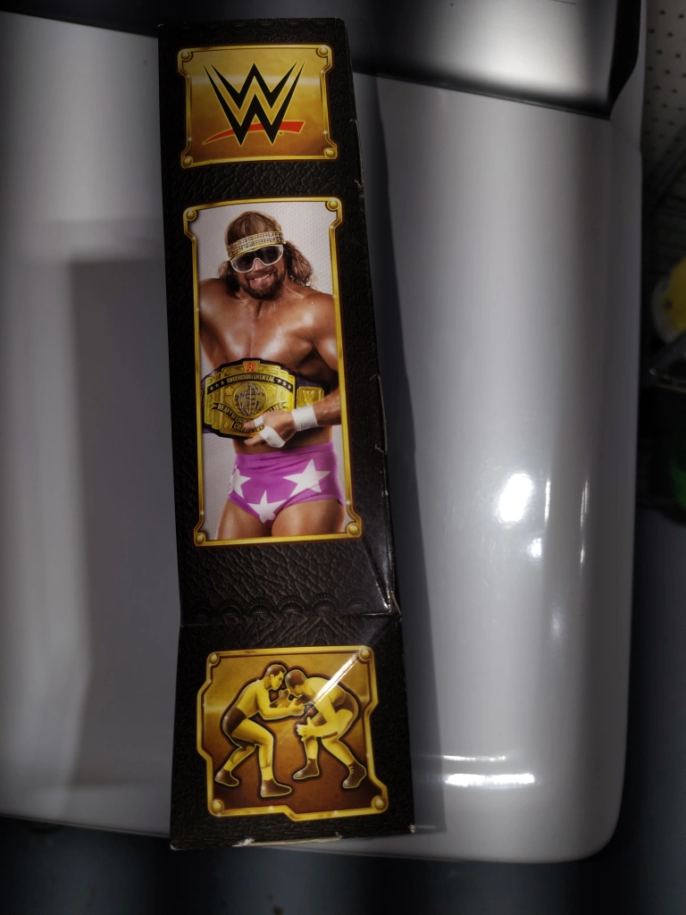 Selling a WWE Defining Moments Macho Man Randy Savage action figure. It is still in its original packaging and recommended for ages 8+