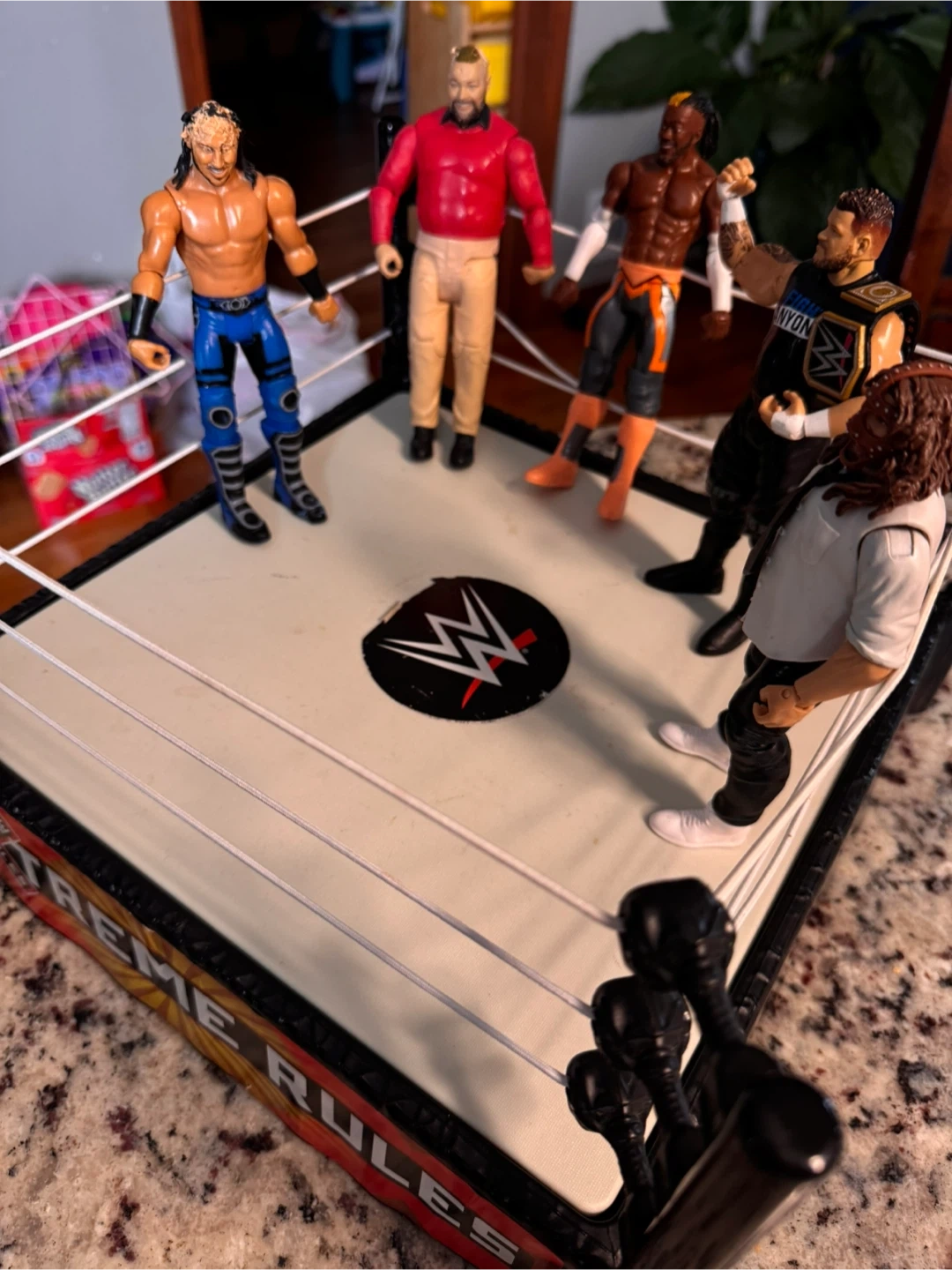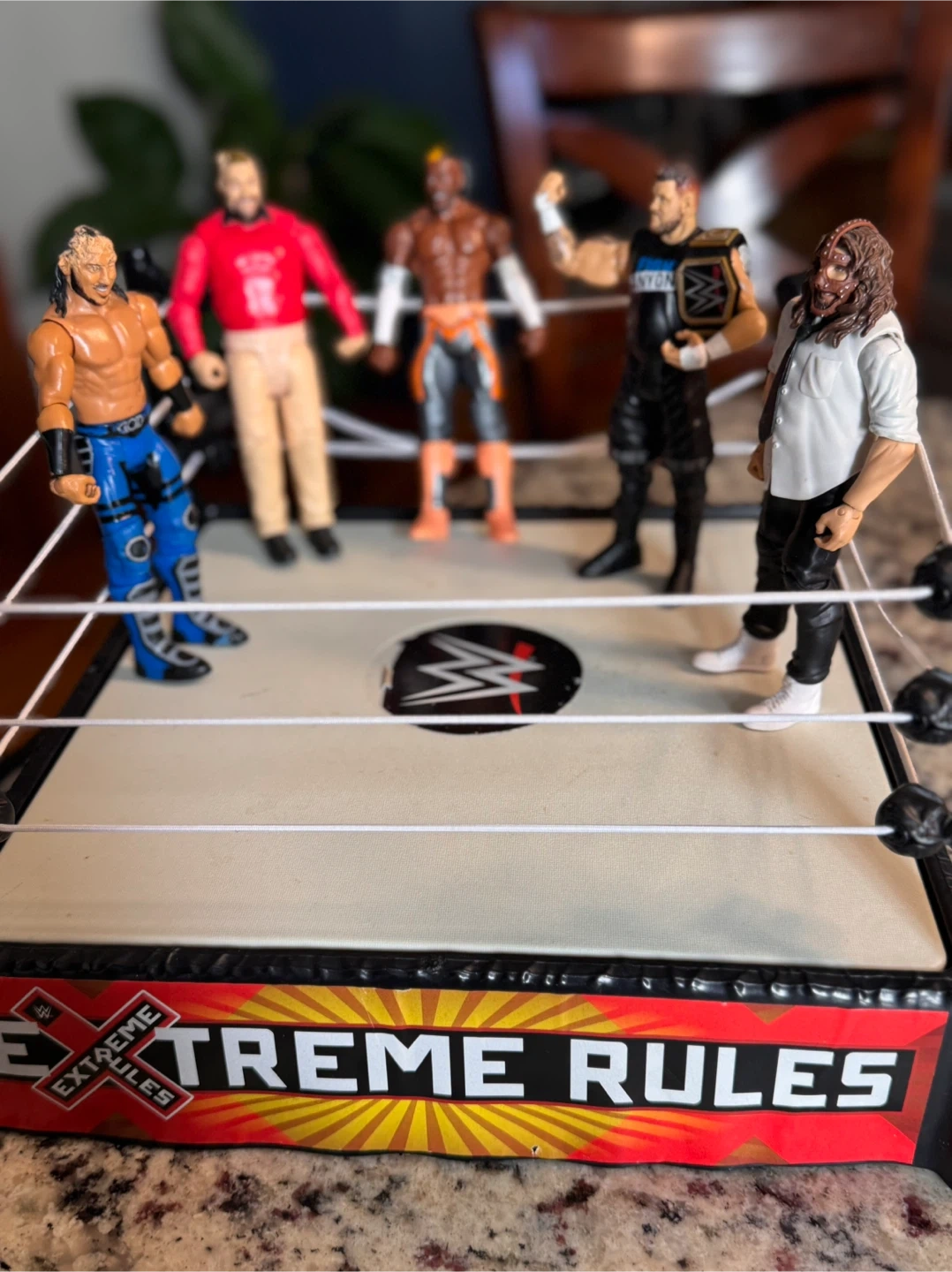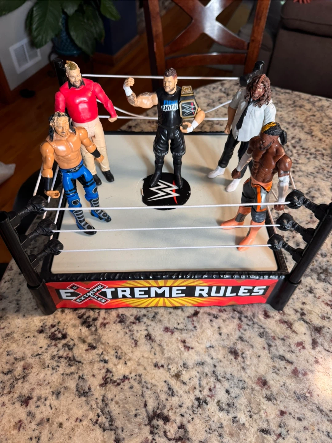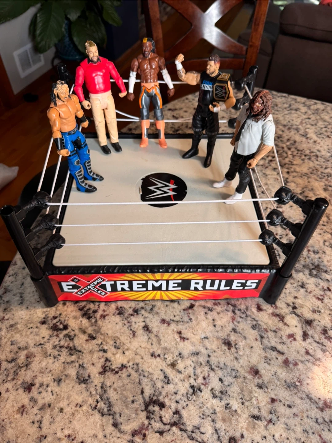 Selling a WWE Extreme Rules wrestling ring with figures. Great for kids who love wrestling!