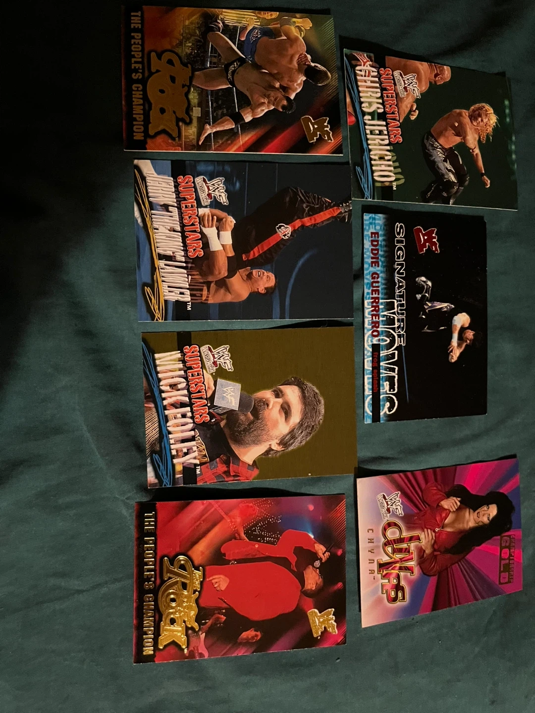 15Selling a set of WWE Superstar trading cards featuring Chris Jericho, Eddie Guerrero, Mick Foley, Chyna, and The Rock. Great for any wrestling fan or collector!
