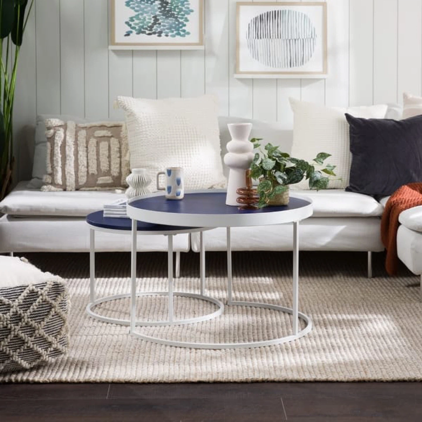 New Gallery Top Nesting Coffee Table Set Blue and White