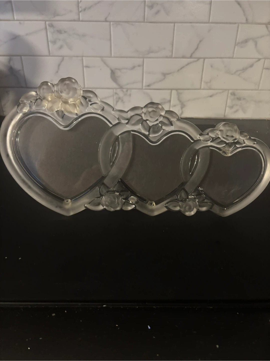 Selling a Mikasa Rosemont Triple Heart Frame, sized at 14 1/2 inches. It's a beautiful piece to display your cherished memories! This frame is in great condition and ready to find a new home