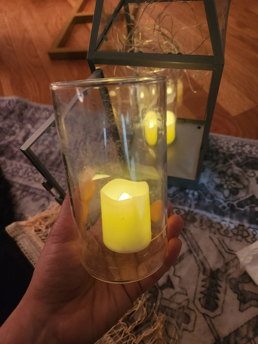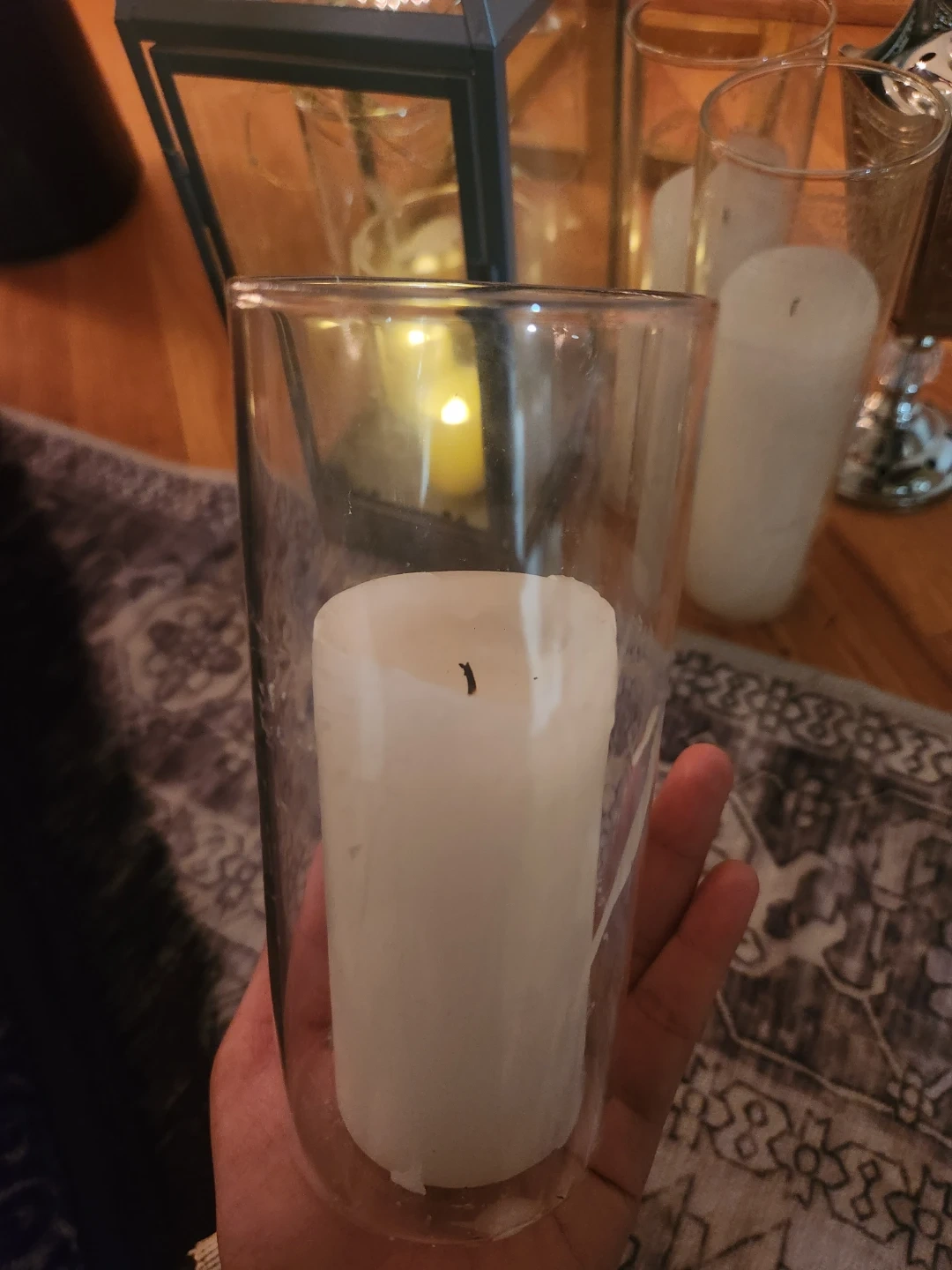 Set of two glass candle holders. holds white pillar candle. Tea lights only for reference. They're perfect for creating a cozy atmosphere! $5 each