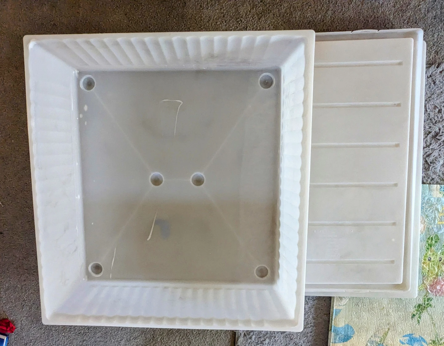I'm selling a Ikea white plastic storage container that comes with its lid. It's in good condition and ready to help you organize your space. Perfect for storing items in your closet, garage, or anywhere you need extra storage!