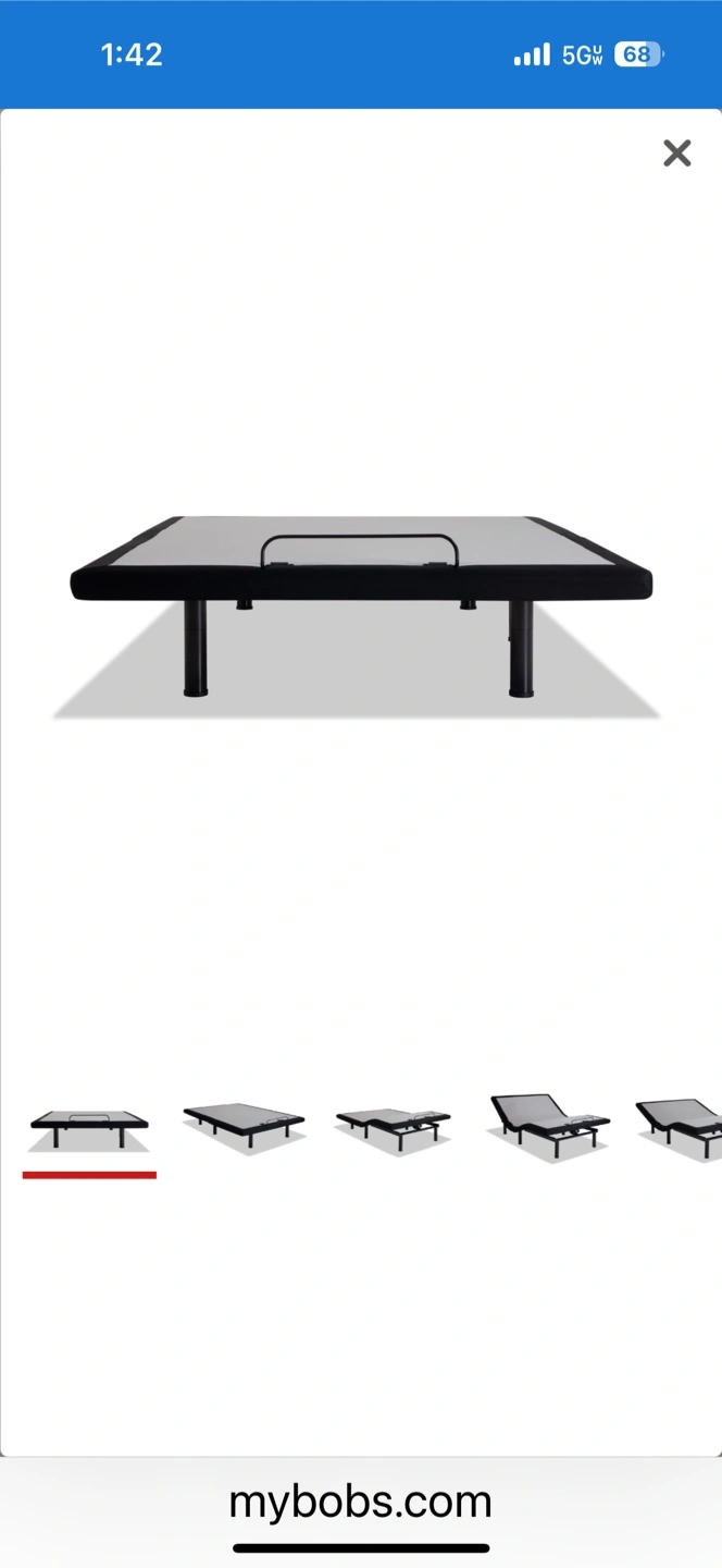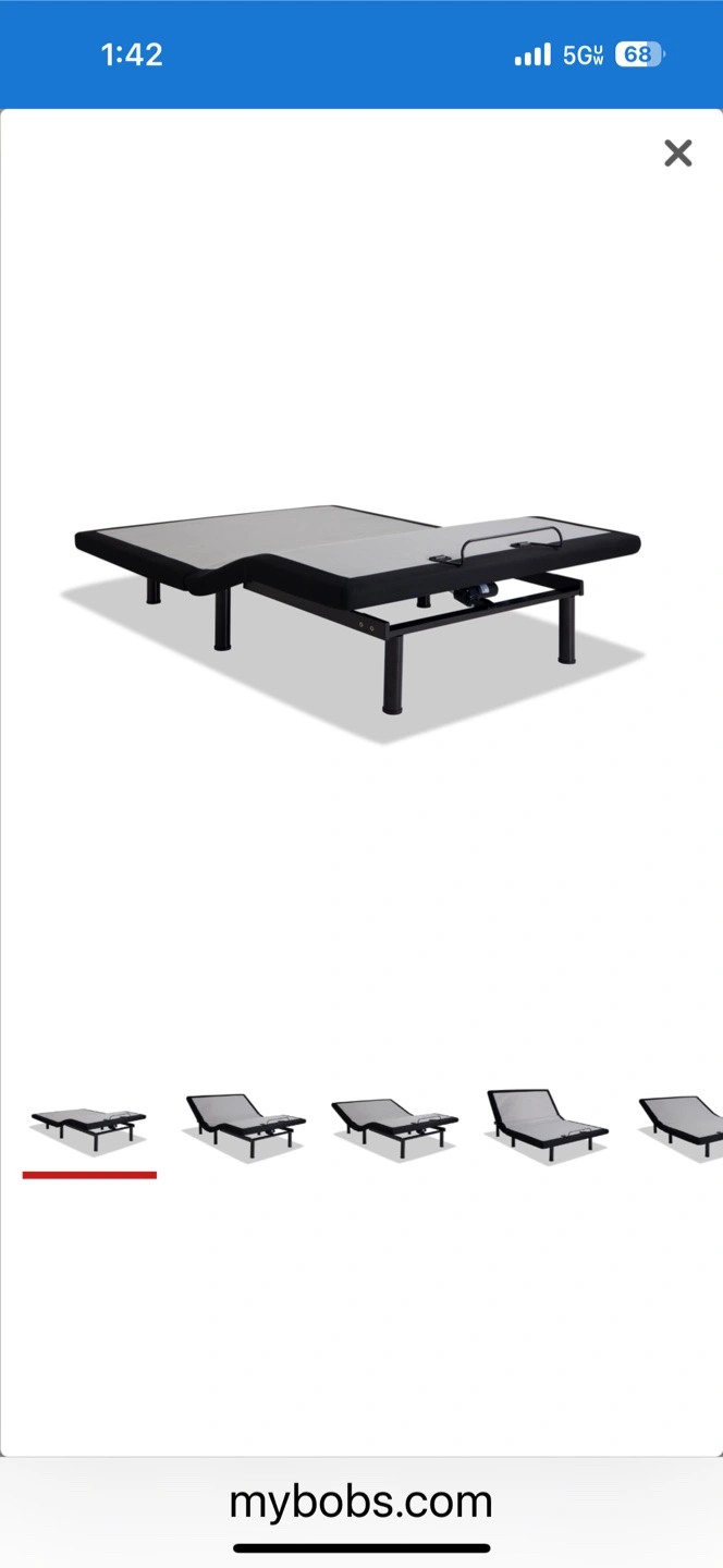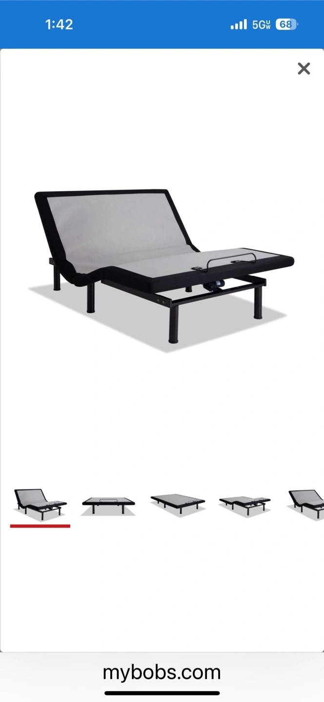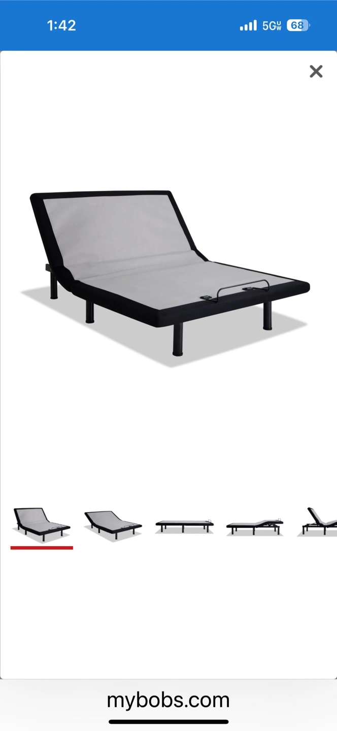 A contemporary bed frame. Features adjustable head and foot positions. Offers a sleek, modern design. Use this to help you get the perfect position for your nightly sleep. Bobs Elite with box spring two built in outlets in the box spring.
