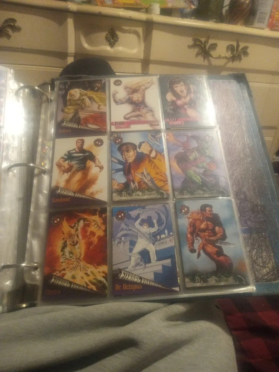 Selling a set of Marvel Spider-Man Eternal Enemies trading cards. The cards feature characters like Vulture, Black Widow, Sandman, Dr. Octopus, Electro, and Kraven. Great for any Marvel or Spider-Man fan!