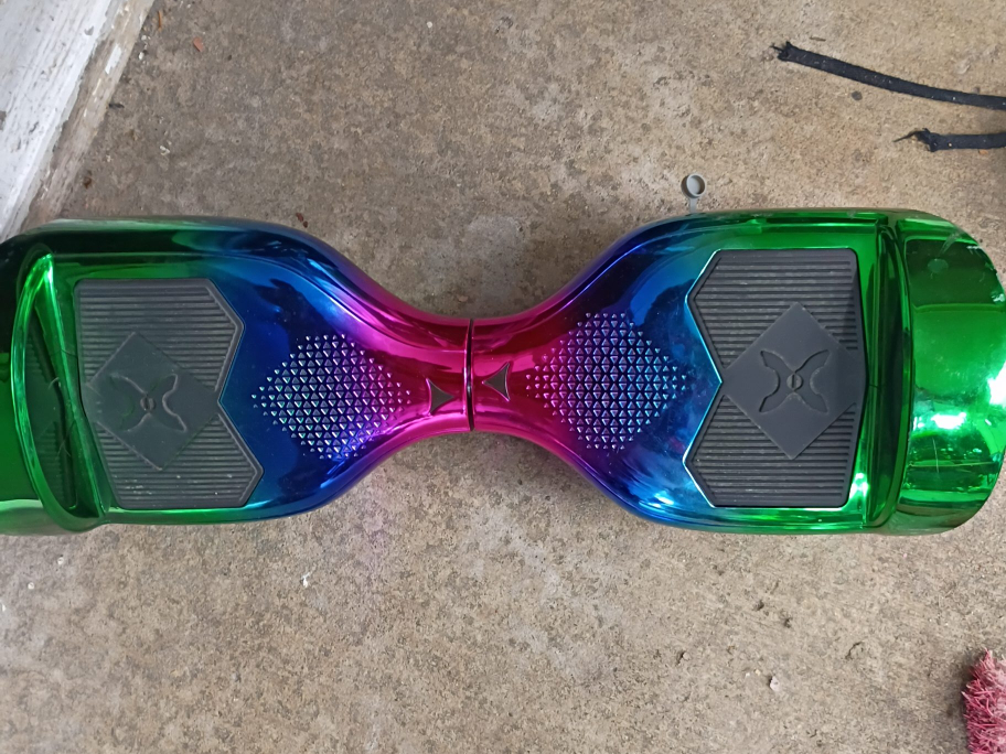 Selling a used X hoverboard in a cool rainbow color. It has some signs of wear, but still works great for getting around except it doesn't have a charger cord