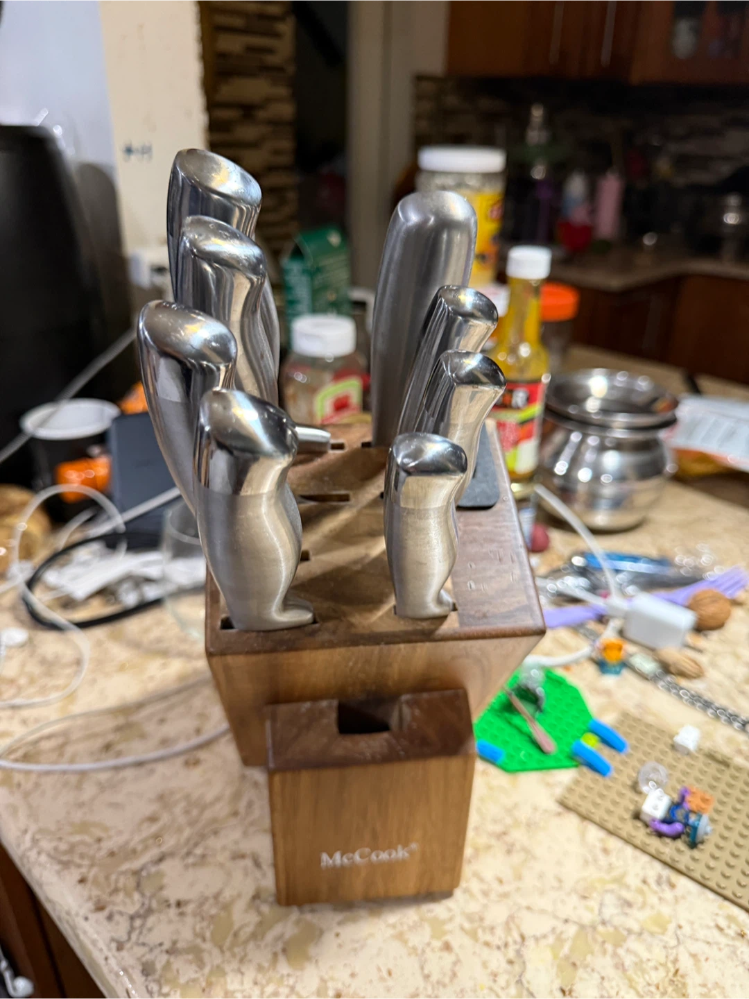 1 / 21 / 2Buy & SellMcCook 8-Piece Knife Set with Wooden BlockMcCook 8-Piece Knife Set with Wooden Block$13.50This McCook knife set includes a wooden block with 8 stainless steel knives. The block is made of solid wood. It's a nice addition to any kitchen!WHERE TO MEETCheck LocationView MapSELLERverifiedShawnJackson Heights39928 reviews1 chats·0 favorites·36 viewsSEND CHAT TO SELLERHi Shawn! I’m interested in your listing.Hi Shawn! I’m interested in your listing.Get the Karrot app to chatSign In to chat