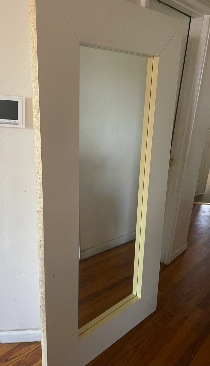 Selling a large, white-framed mirror. It's a great addition to any room and can really open up a space. The frame is a simple, clean design that complements various decor styles. It's in good condition and ready to find a new home! Estimated length 7’2