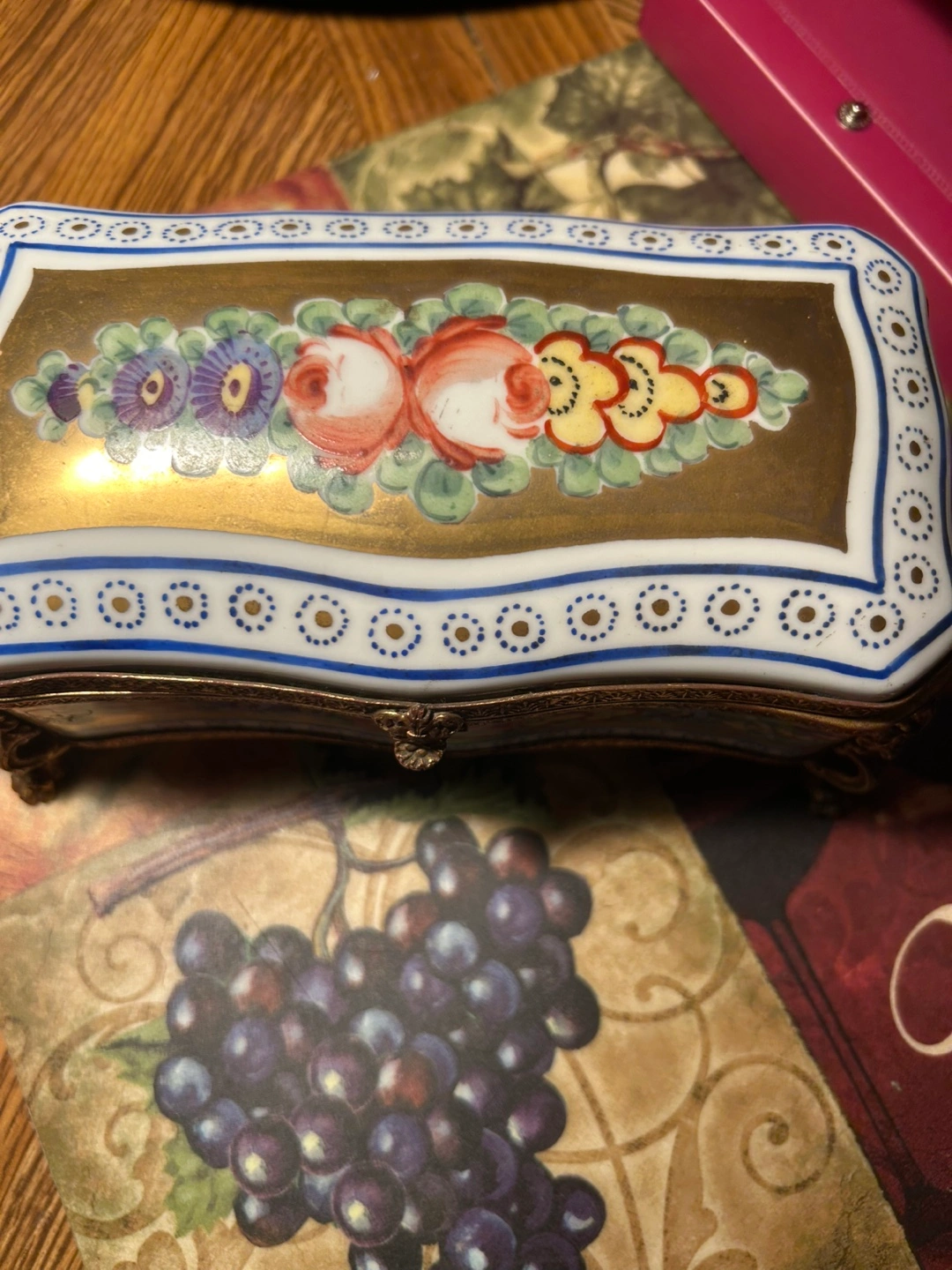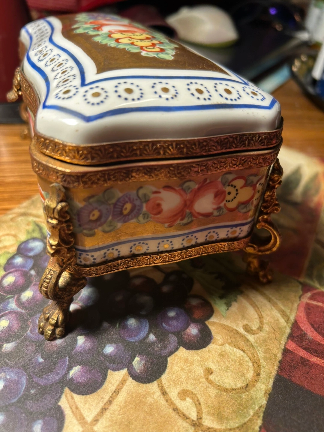 SEVRES Antique Porcelain Trinket Box with Gold Accents