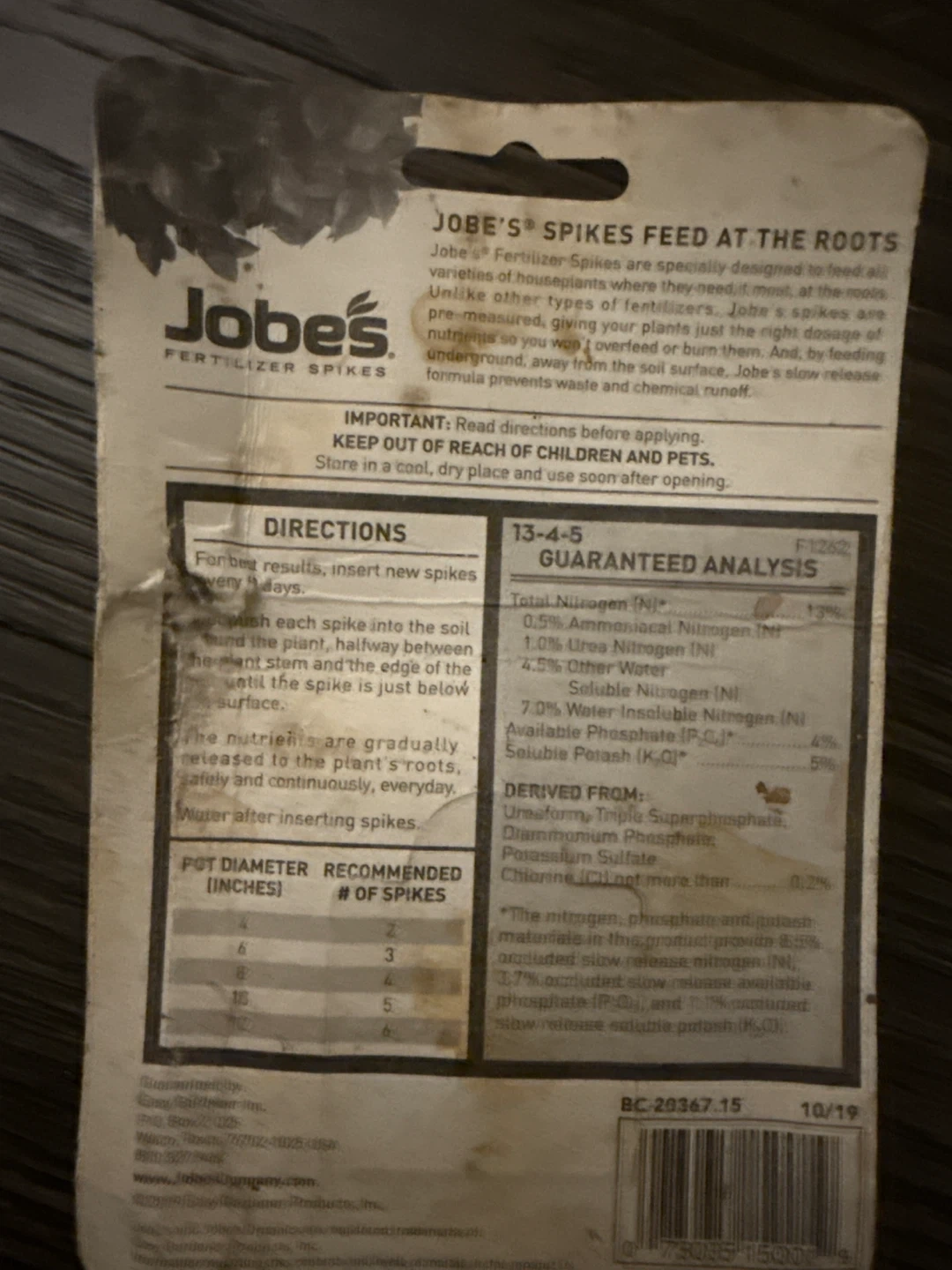 Selling a pack of Jobe's Fertilizer Spikes for beautiful houseplants! This pack contains 30 spikes to feed your plants at the roots. The guaranteed analysis is 13-4-5. See photos for directions and other details