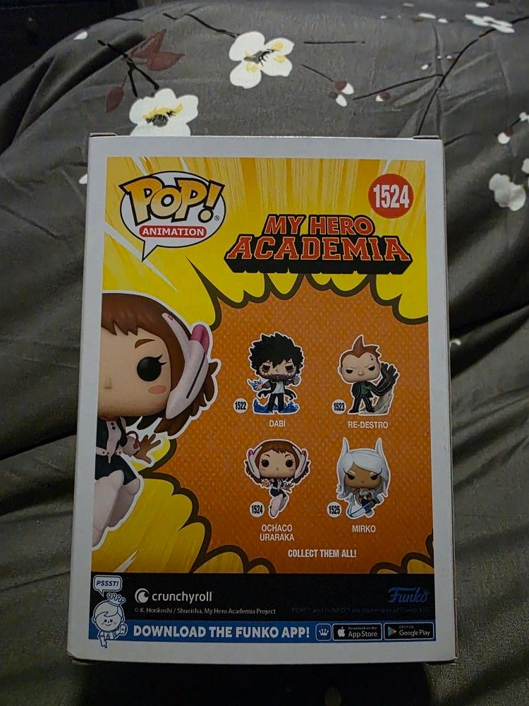 Aiming to be a Pro Hero, Ochaco Uraraka, also known by her hero name Uravity, will need to persevere through her U.A. High School training to prove that she's hero material. Help Pop! Ochaco master her Zero Gravity quirk as she blasts off in your My Hero Academia collection. There’s a 1 in 6 chance that you may find the metallic chase of Pop! Ochaco Uraraka. Vinyl figure is approximately 4 in (10.2 cm) tall.