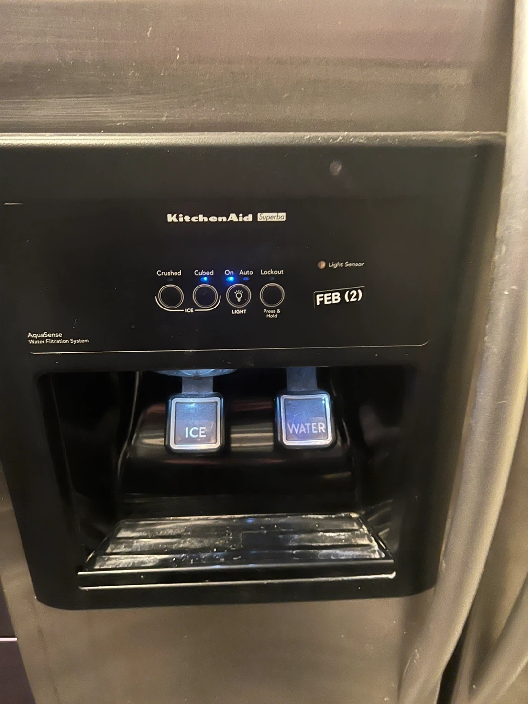 Selling a KitchenAid Superba refrigerator in stainless steel. It features a water and ice dispenser. Perfect for any kitchen!