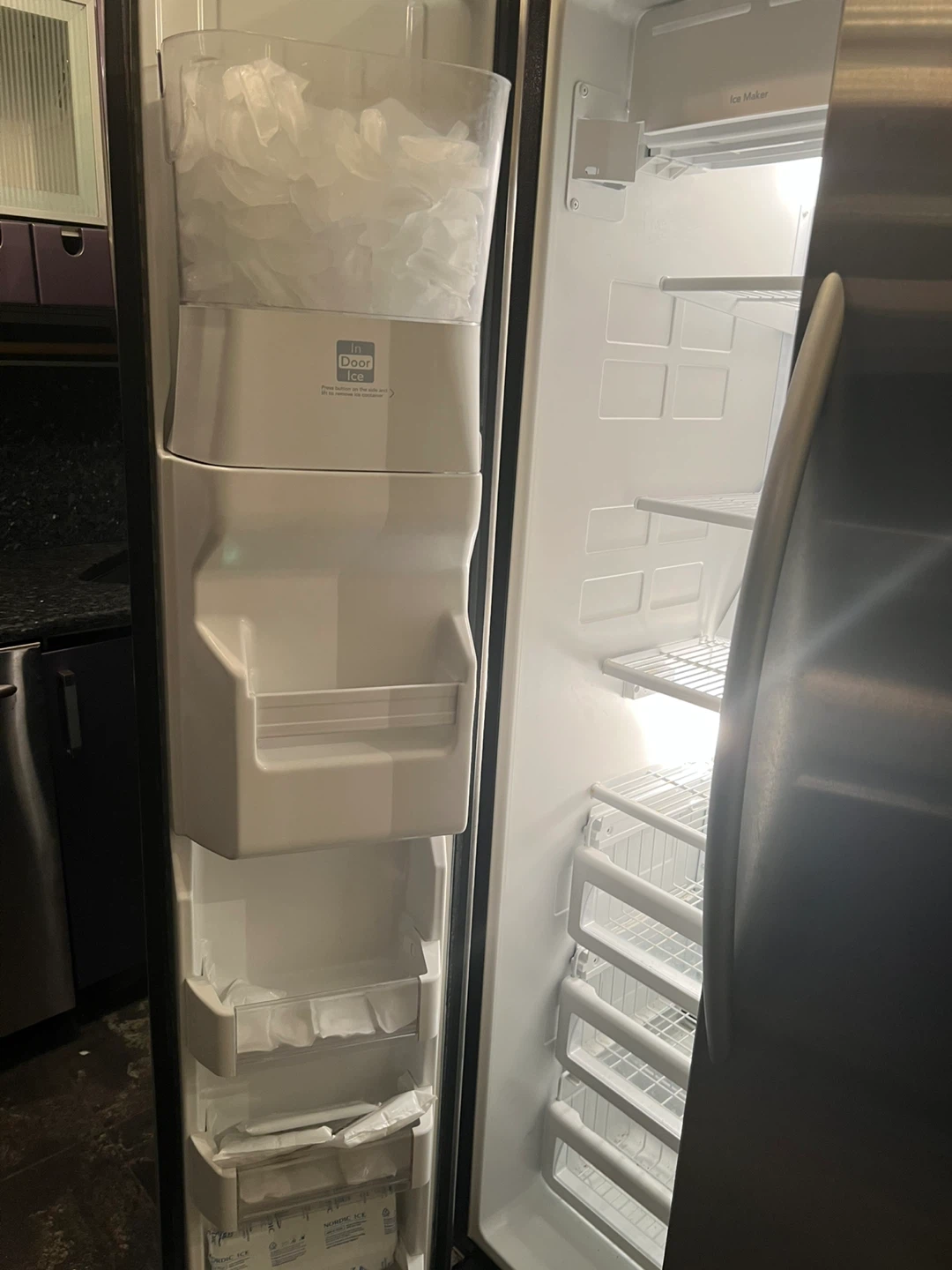 Selling a KitchenAid Superba refrigerator in stainless steel. It features a water and ice dispenser. Perfect for any kitchen!