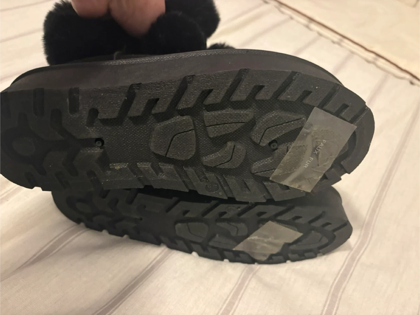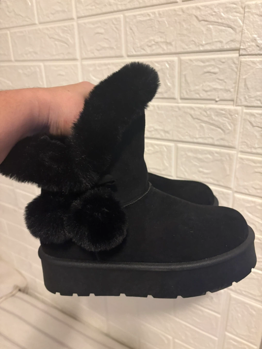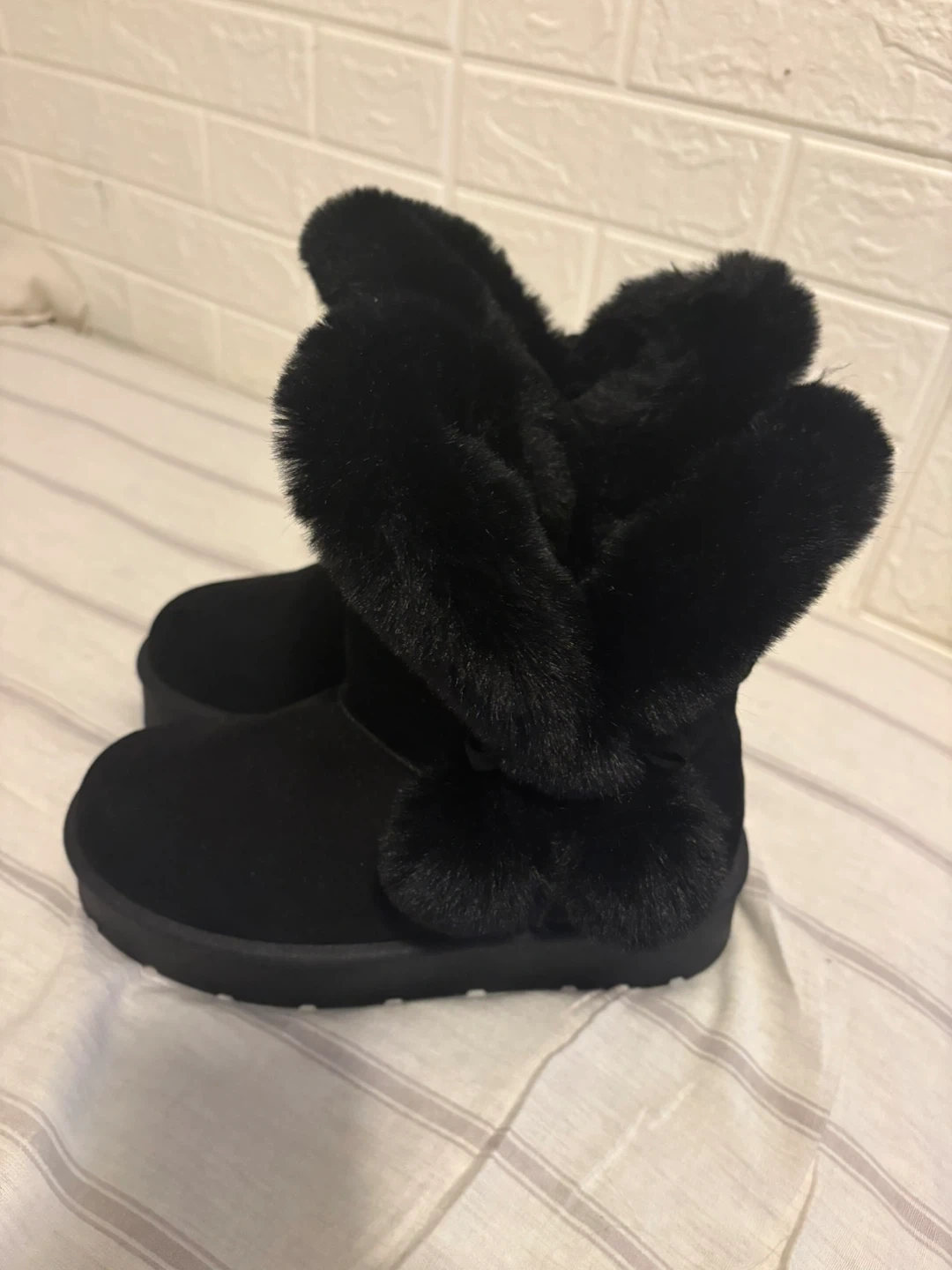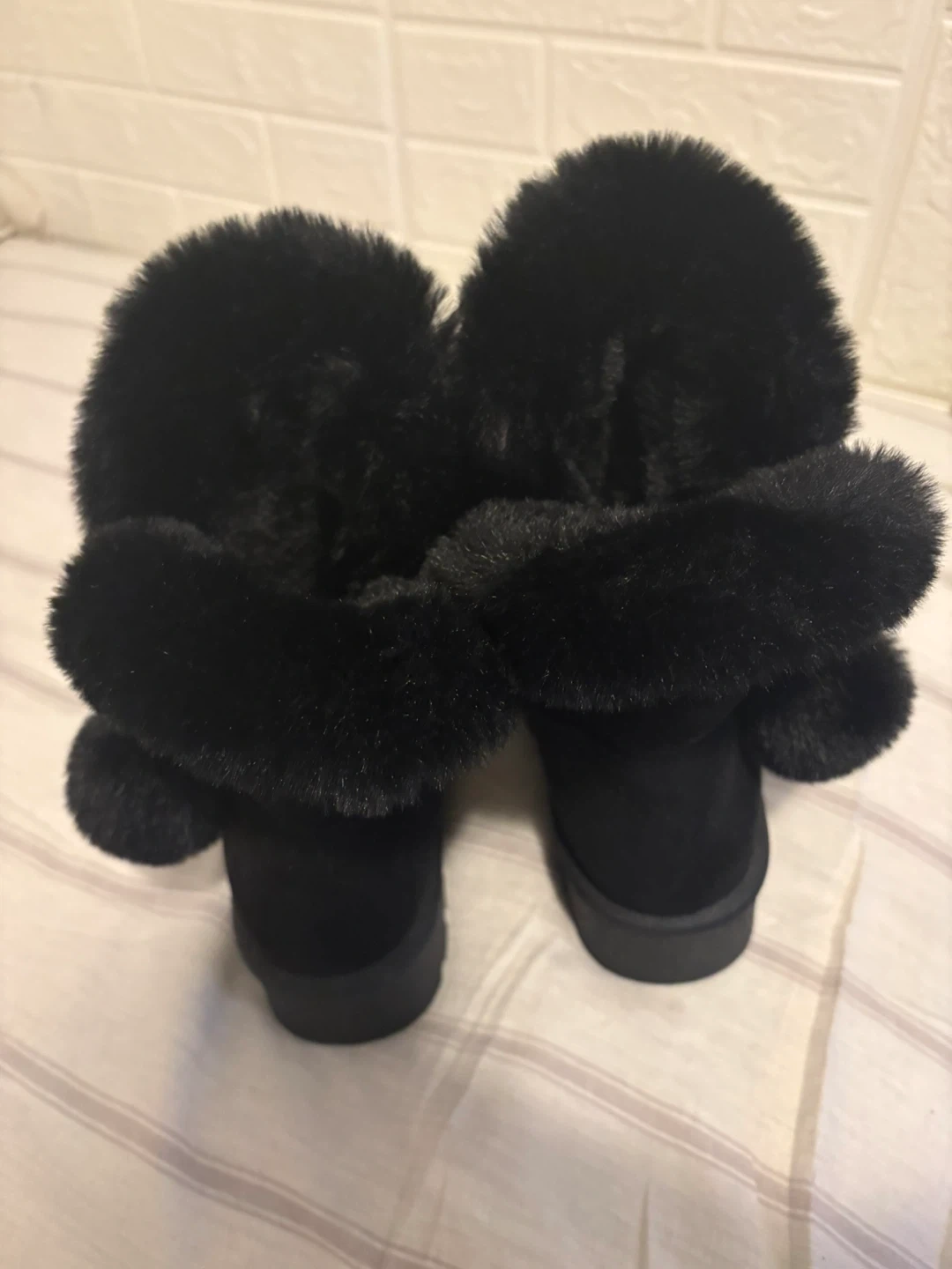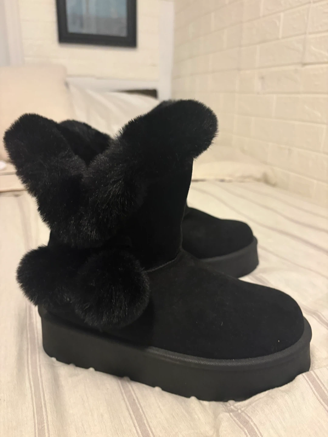 Cozy black boots with a plush faux fur trim. Featuring a durable sole and a stylish design. These boots are great for keeping warm during colder months!