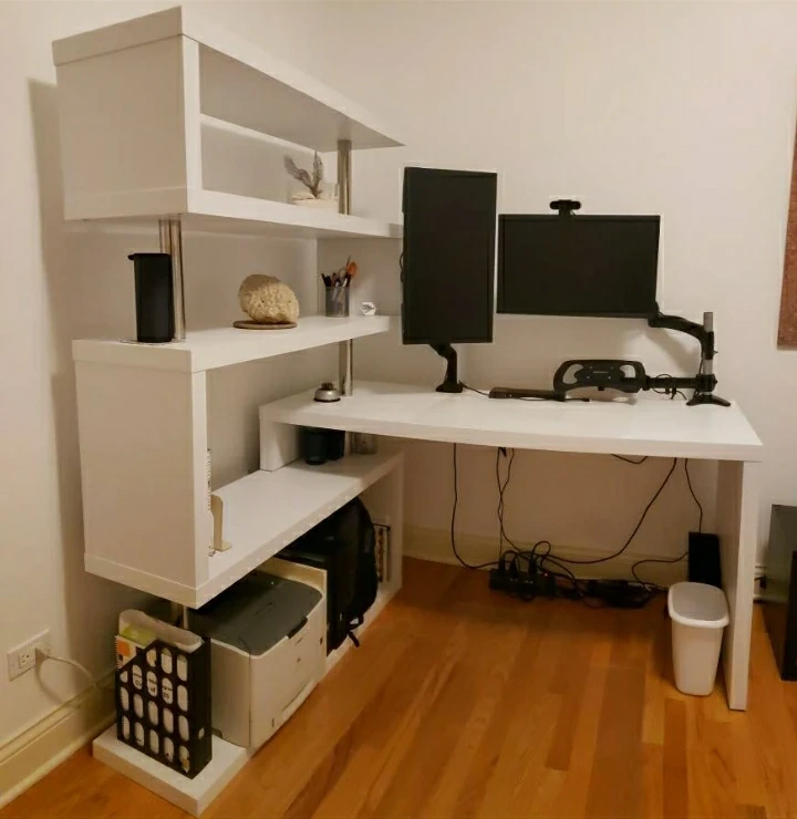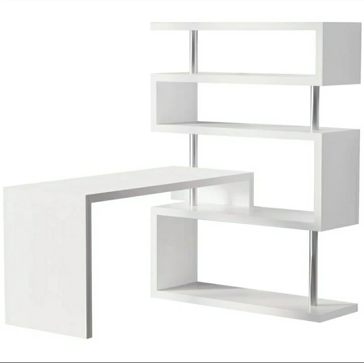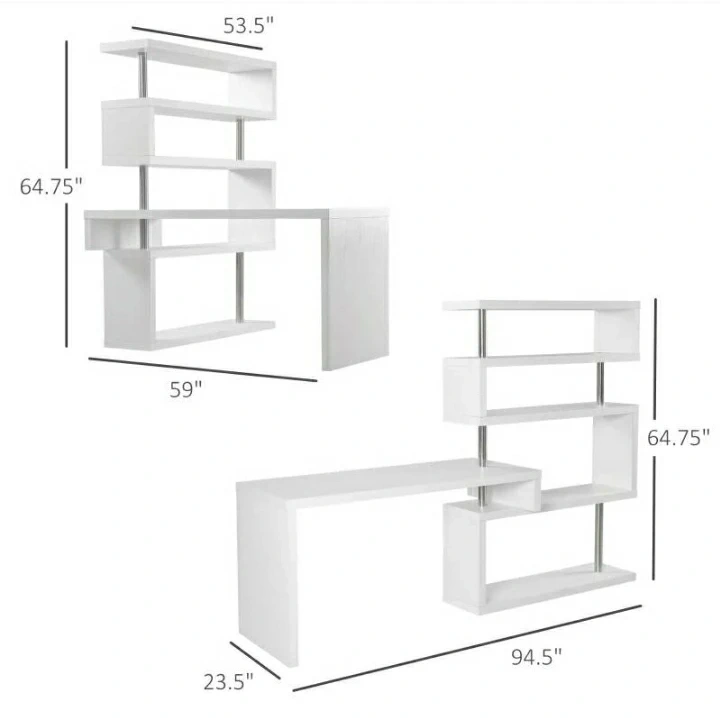 White L-Shaped Computer Desk with Rotating Bookshelves