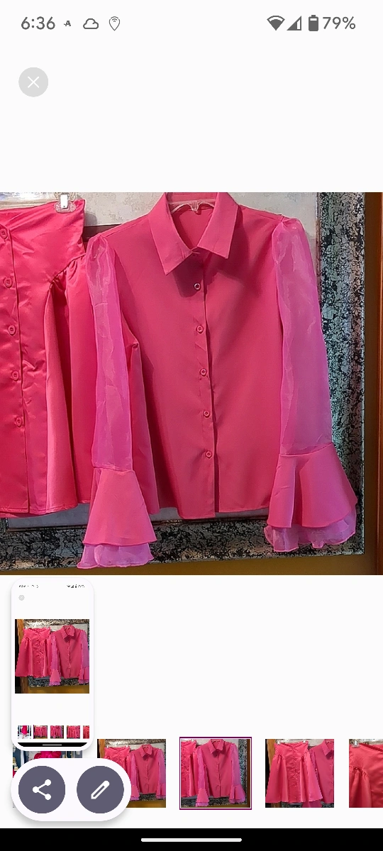 Polished Pink Blouse & Skirt Set with Sheer Sleeves