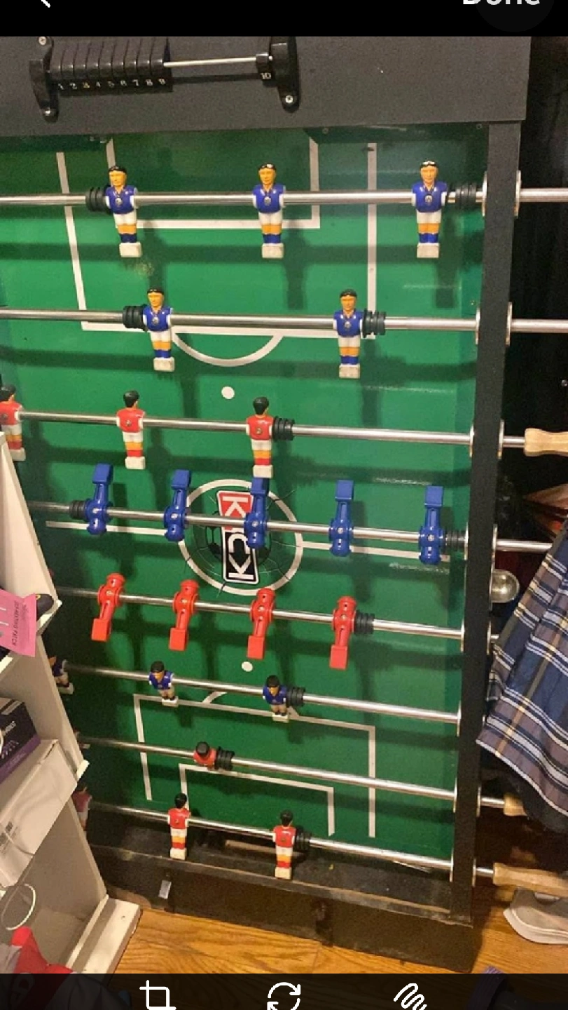 Selling a Kick foosball table! It's in good condition and ready for some fun games. The table features red and blue players. Perfect for a game room or family entertainment