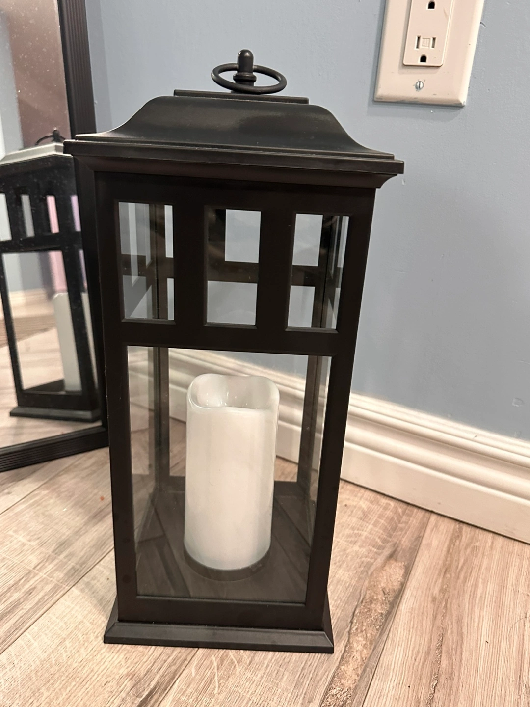 Black metal lantern. Glass panels. LED candle included. Perfect for indoor or outdoor decor. Its in great condition .