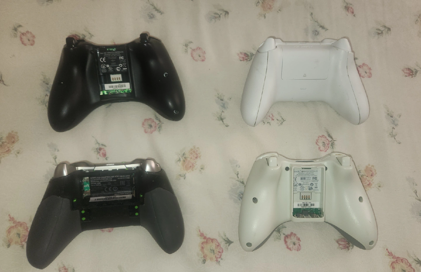 10Selling four Xbox 360 wireless controllers. Two are black and two white. Both are in good working condition and ready for a new home!