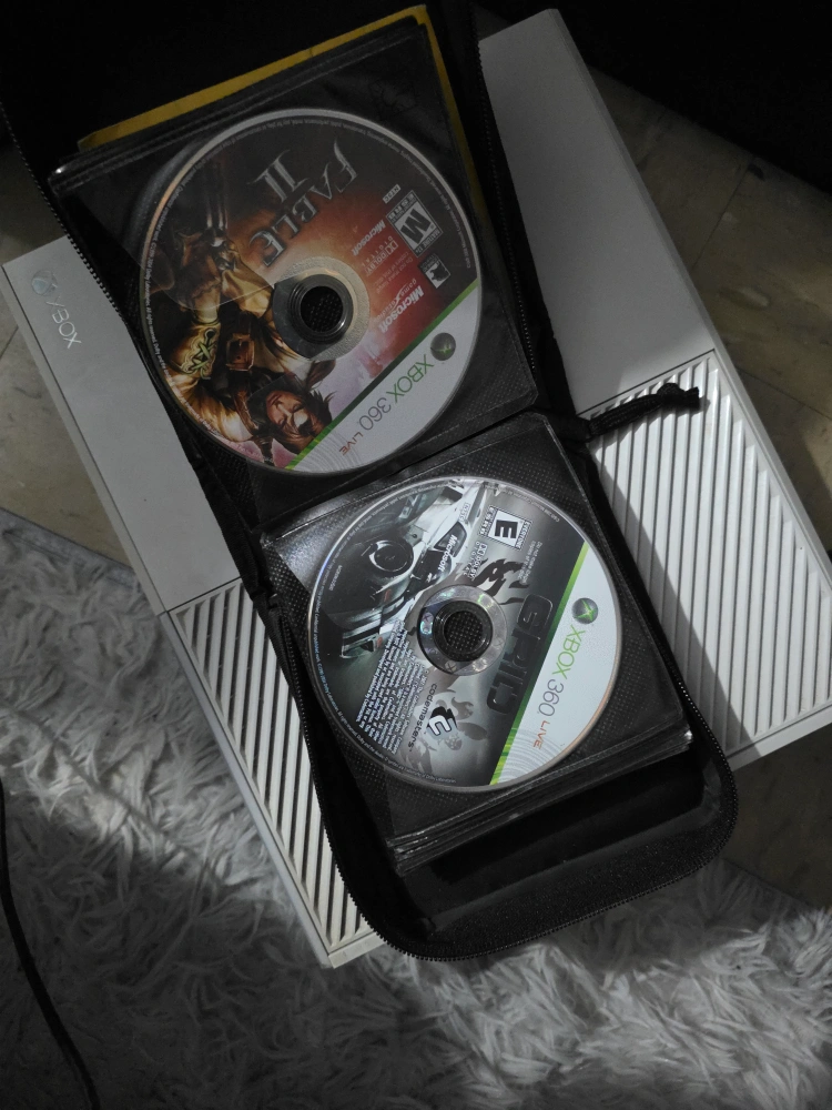 lots of xbox 360 games physical. RE5, HALO 3, N3, FF13, STAR OCEAN THE LAST HOPE, FAR CRY 2, KAMEO, R6 VEGAS, NFS UNDERCOVER, NINJA GAIDEN, COD4MW, BF BAD COMPANY, ENCHANTED ARMS, GHOST RECON, HALO REACH, FALLOUT 3, GODATHER 2, FABLE 2, GRID, VIKING, SF4, GEARS OF WAR 3, LOST ODYSSEY, SOUL CALIBER 4