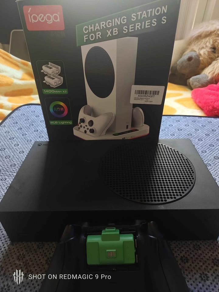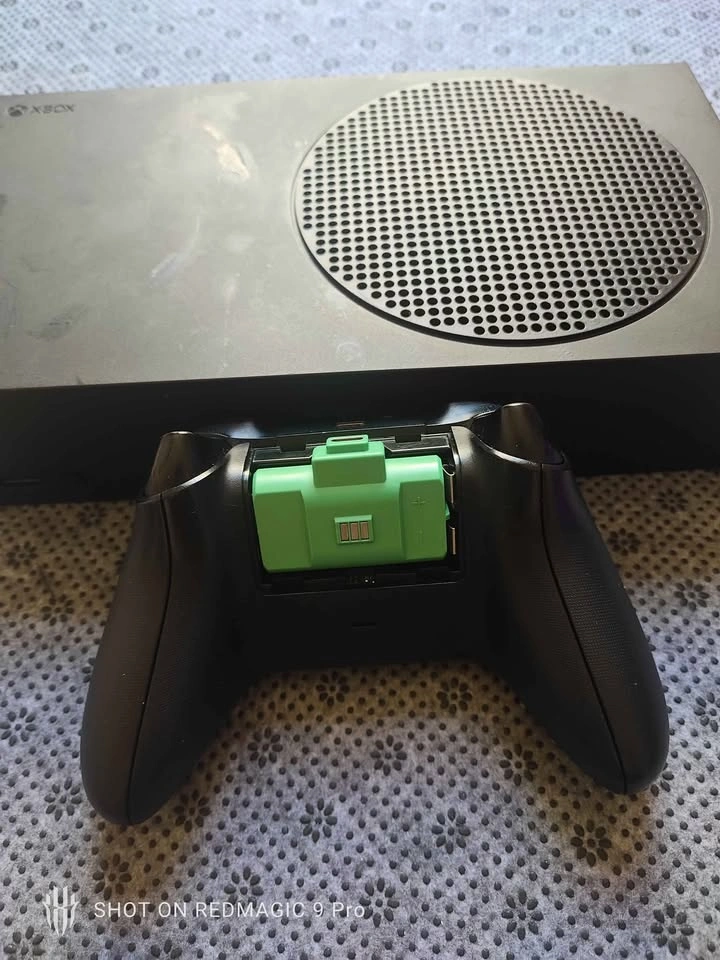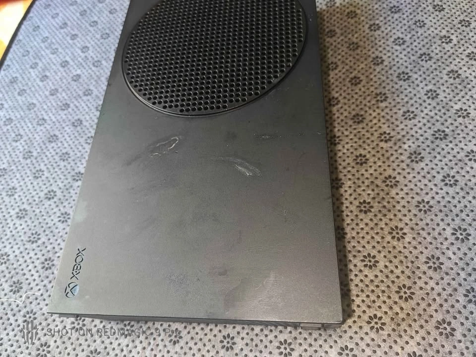 103It has a detail on the casing, as seen in the photos. The locks on the bottom cover are also broken, but it works perfectly; it's just cosmetic damage. 1 controller 🎮 Controller without back cover HDMI cable Power cable Extra charging station Feel free to message if you have any questions!