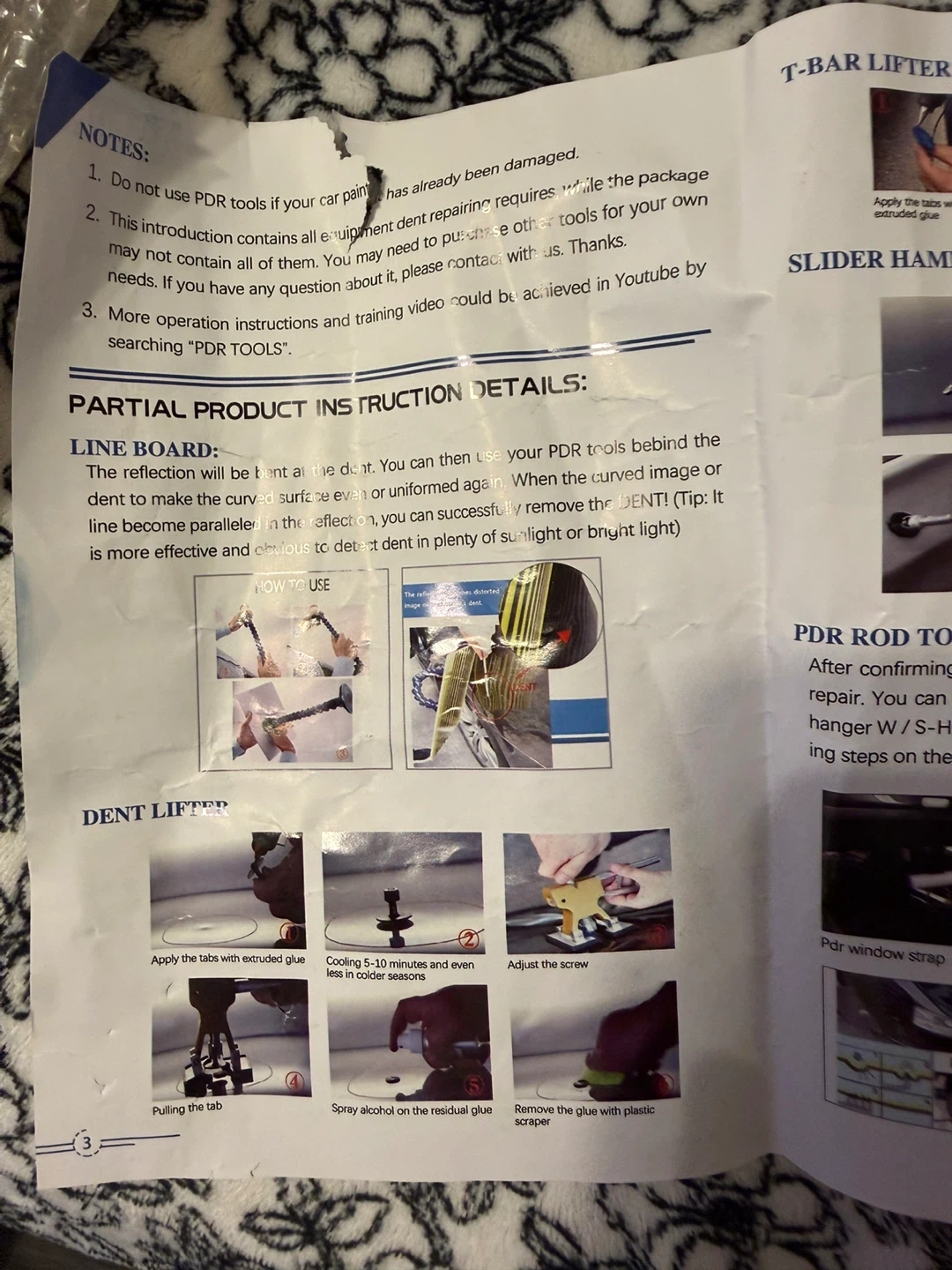 This is a car dent repair tool kit. It includes a T-bar lifter and a slider hammer. Also comes with PDR rod tools, including a window strap, s-hooks, iron chain, gasbag, and wedge. Everything you need for paintless dent removal!