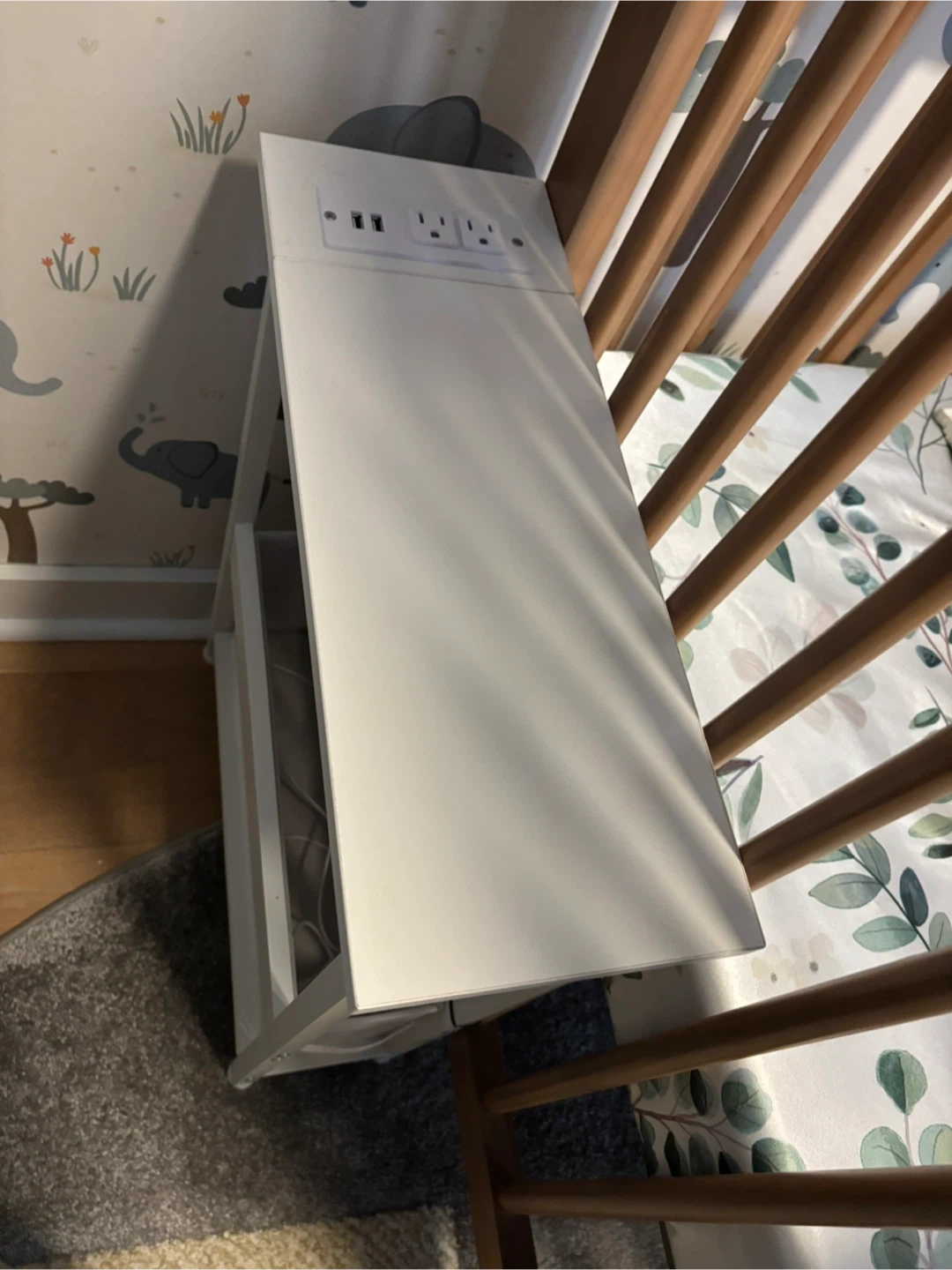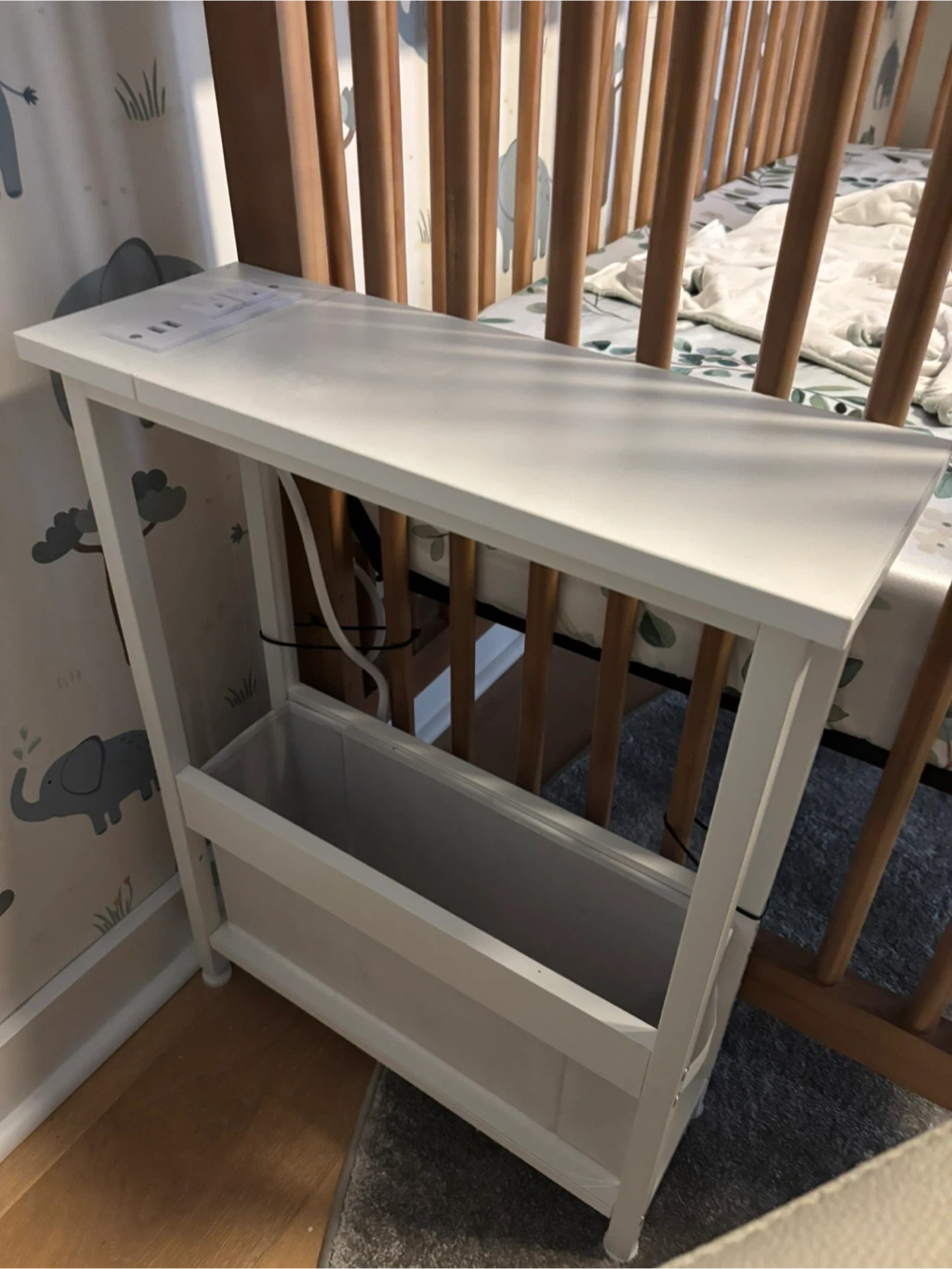 White Bedside Table with Integrated Power Outlets and USB Ports