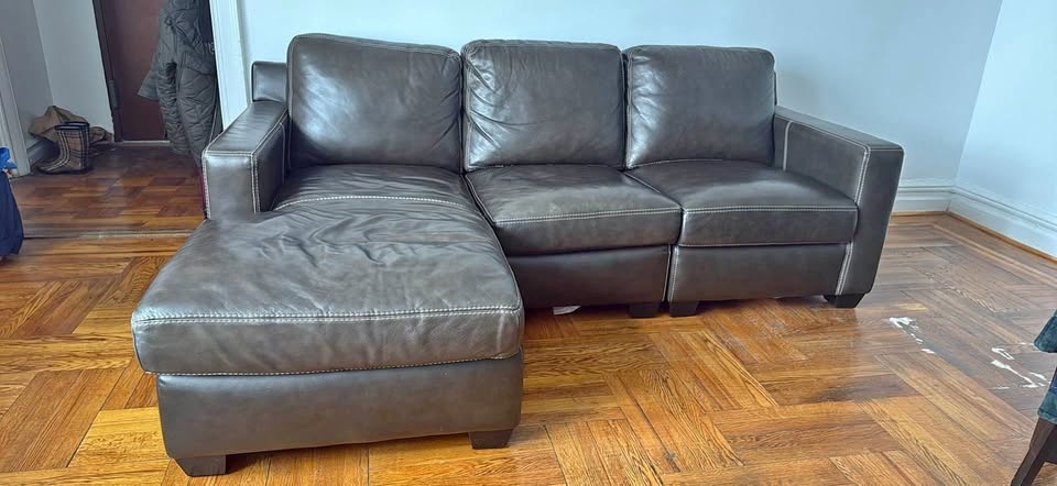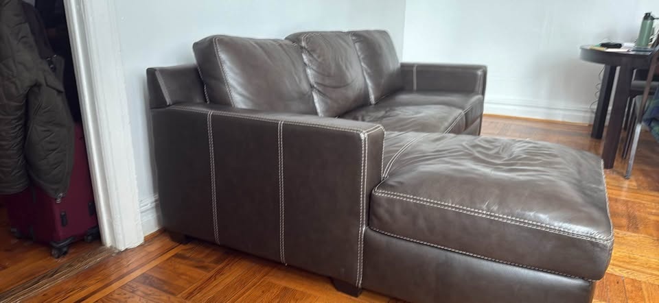 1 / 71 / 7Buy & SellRaymour & Flanigan Dark Brown Leather Sectional SofaRaymour & Flanigan Dark Brown Leather Sectional Sofa$350Comfy dark brown leather sectional sofa. Left-side chaise lounge. White contrast stitching details. Anaheim collection.WHERE TO MEETCheck LocationView MapSELLERverifiedErickNorwood650 reviews1 chats·0 favorites·72 viewsSEND CHAT TO SELLERHi Erick! I’m interested in your listing.Hi Erick! I’m interested in your listing.Get the Karrot app to chatSign In to chat