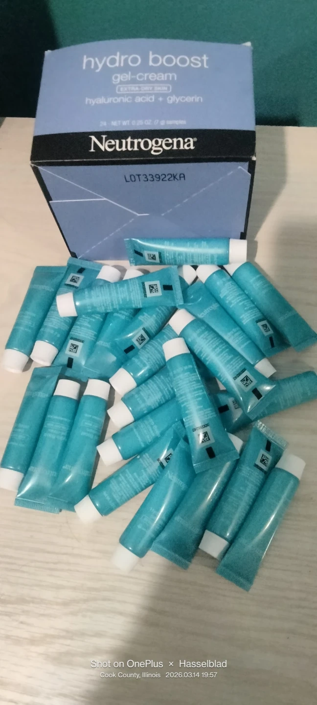 New - Neutrogena Hydro Boost gel-cream for extra-dry skin. It's a lightweight formula that absorbs quickly.Thare is 24 tubes-each sample tube contains 0.25 oz (7g) of product. Contains hyaluronic acid + glycerin.