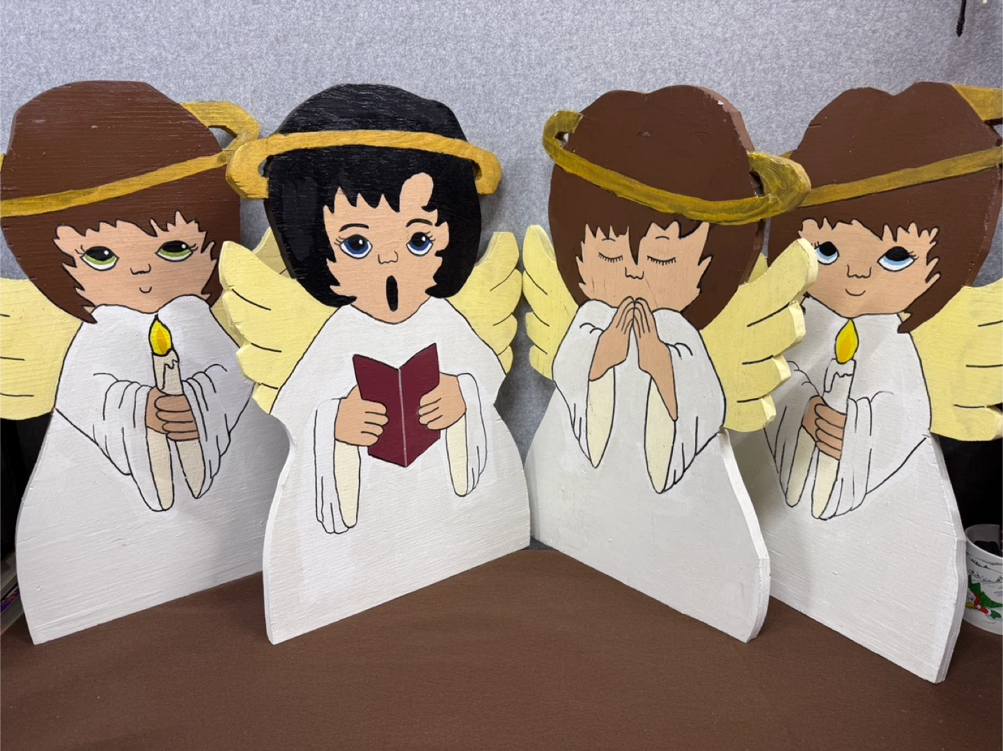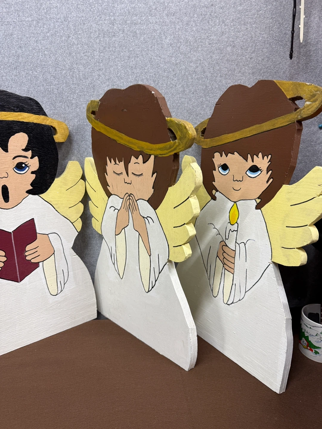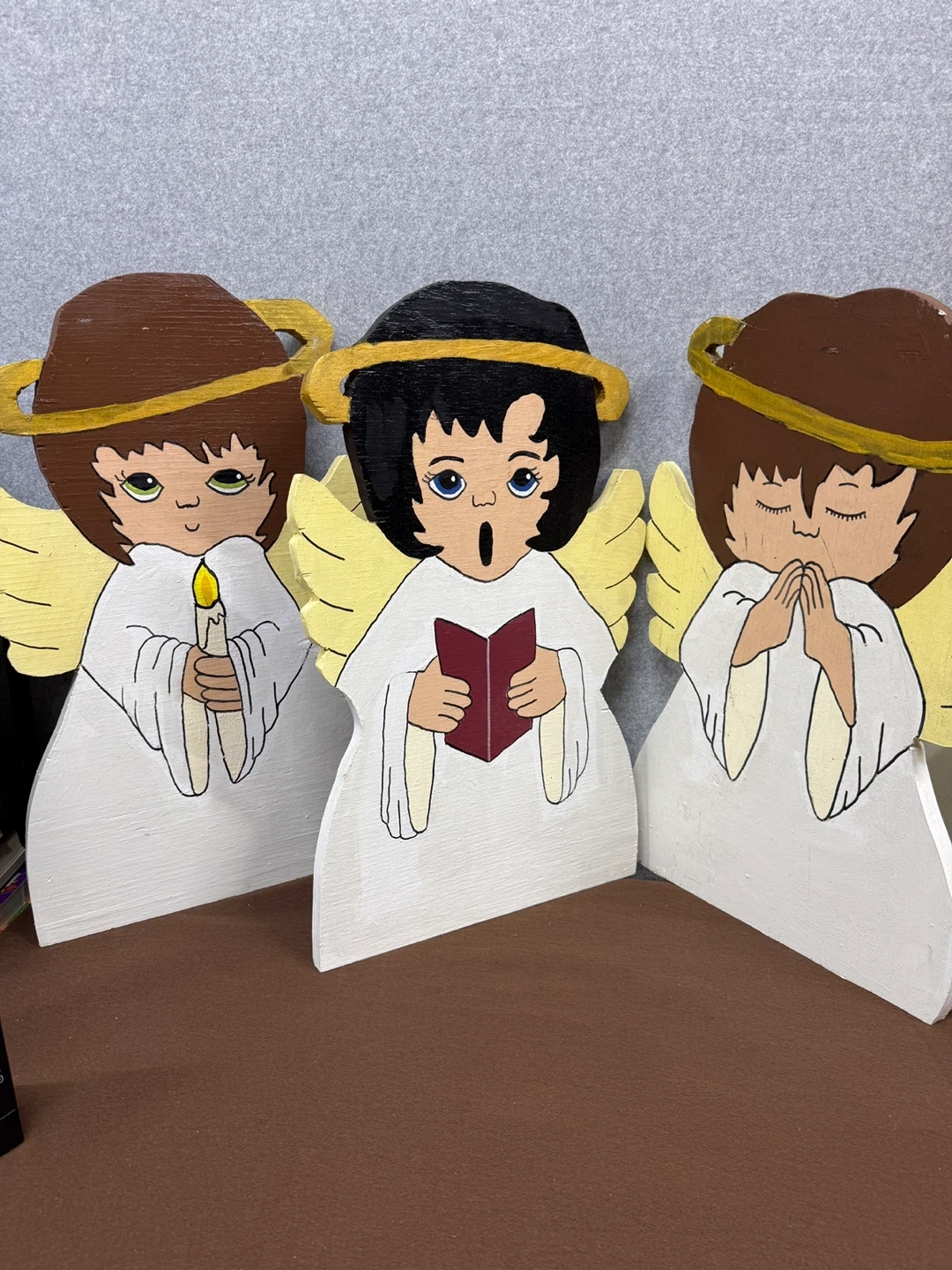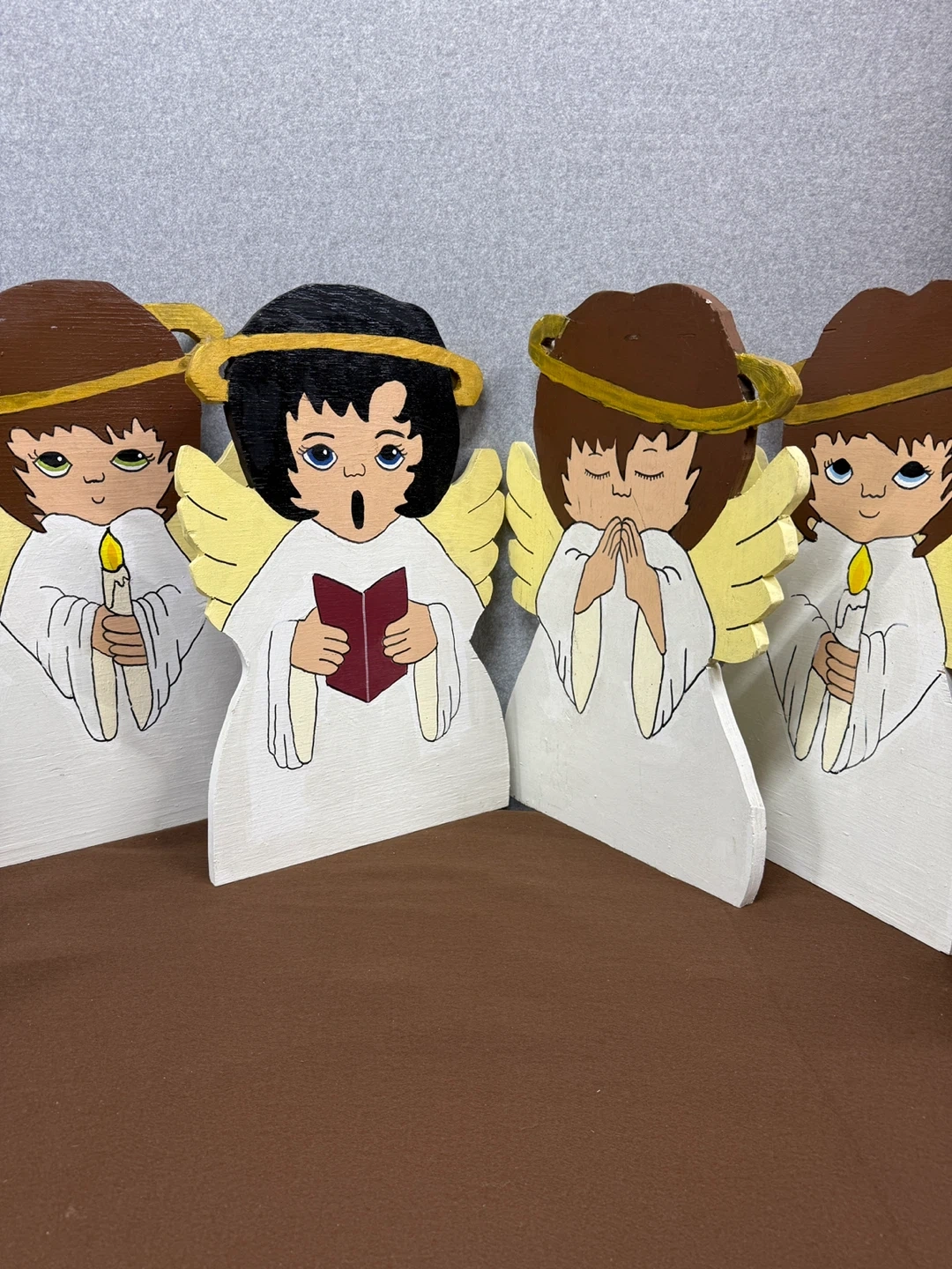 These are handmade wooden angels, perfect for Christmas decorations! They are painted with care and each has a unique expression. Add a touch of handmade charm to your holiday decor
