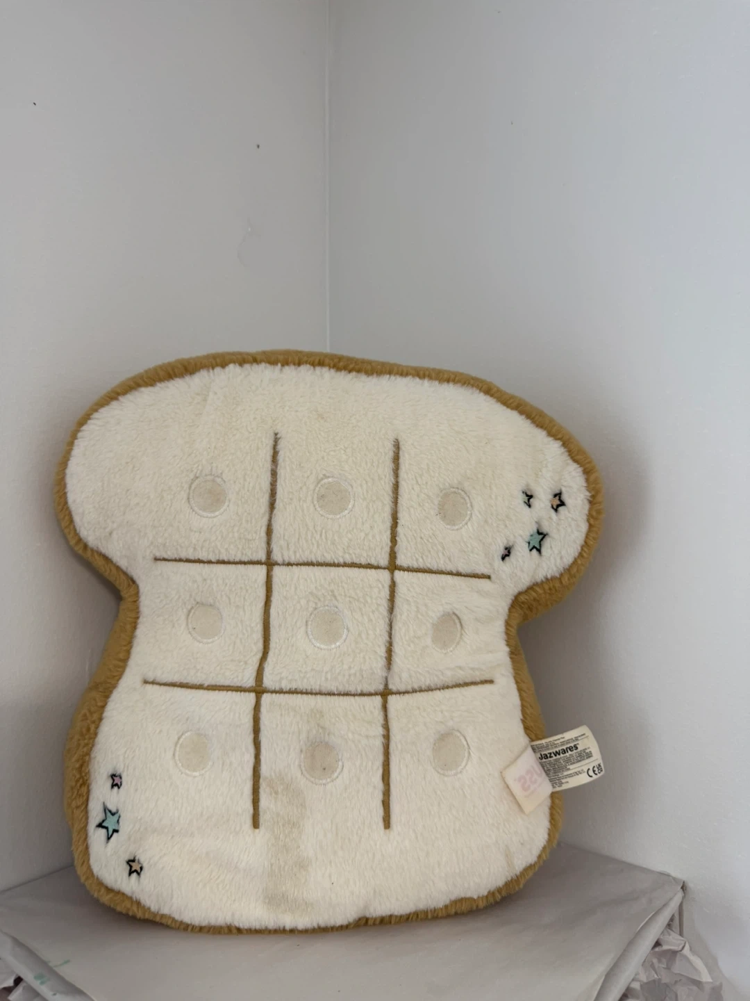 This plush tic tac toe game is shaped like a slice of toast and comes with adorable avocado and fried egg plushies. It's a fun and portable game for kids. Made by Jazwares.