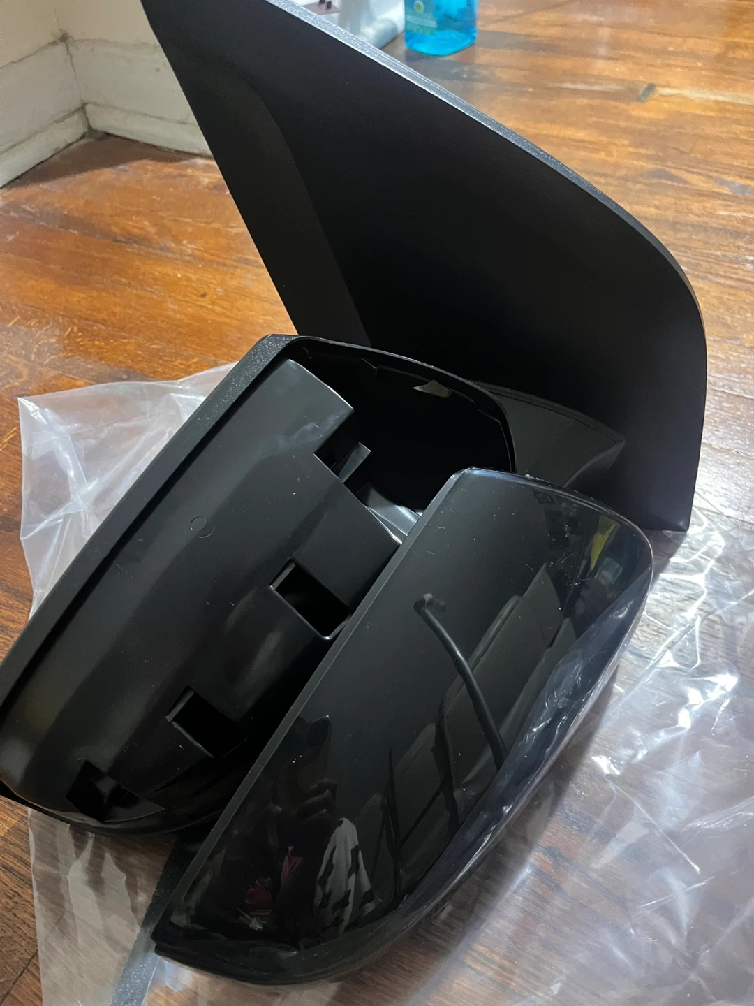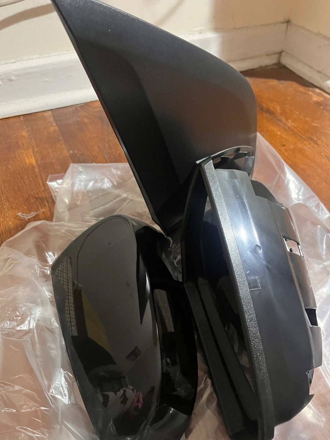 This is a black power glass driver side view mirror. It's designed for automotive use. Includes the connector for power glass functionality.