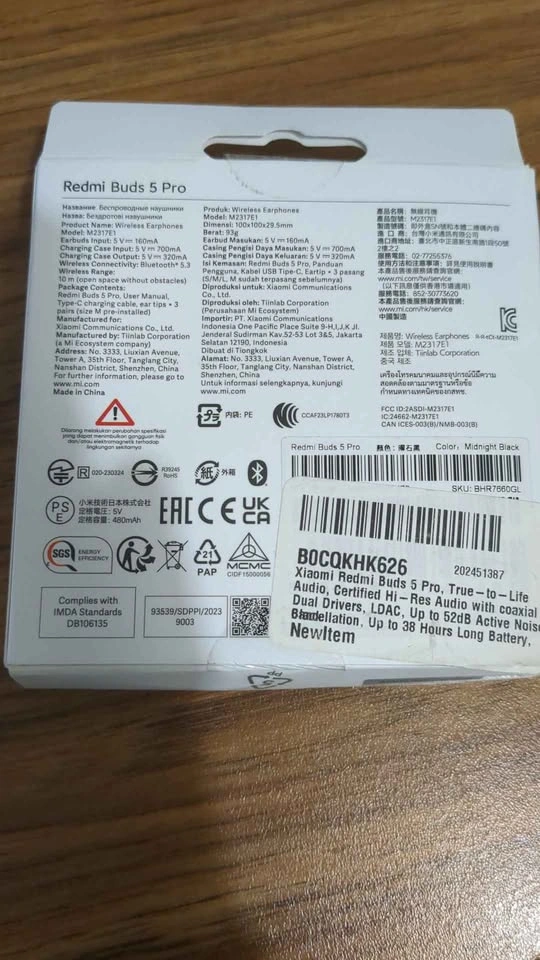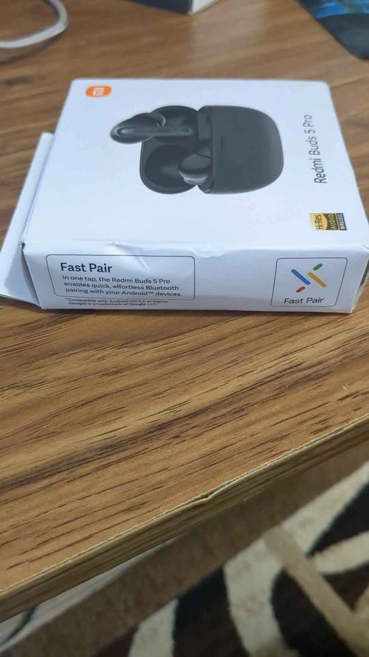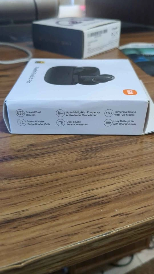 What's in the box: - Redmi Buds 5 Pro wireless earbuds - User Manual - Ear Cushions - Charging Station True-to-Life Audio, Certified Hi-Res Audio with coaxial Dual Drivers, LDAC, Up to 52dB Active Noise Cancellation, and up to 38 Hours Long Battery Life.