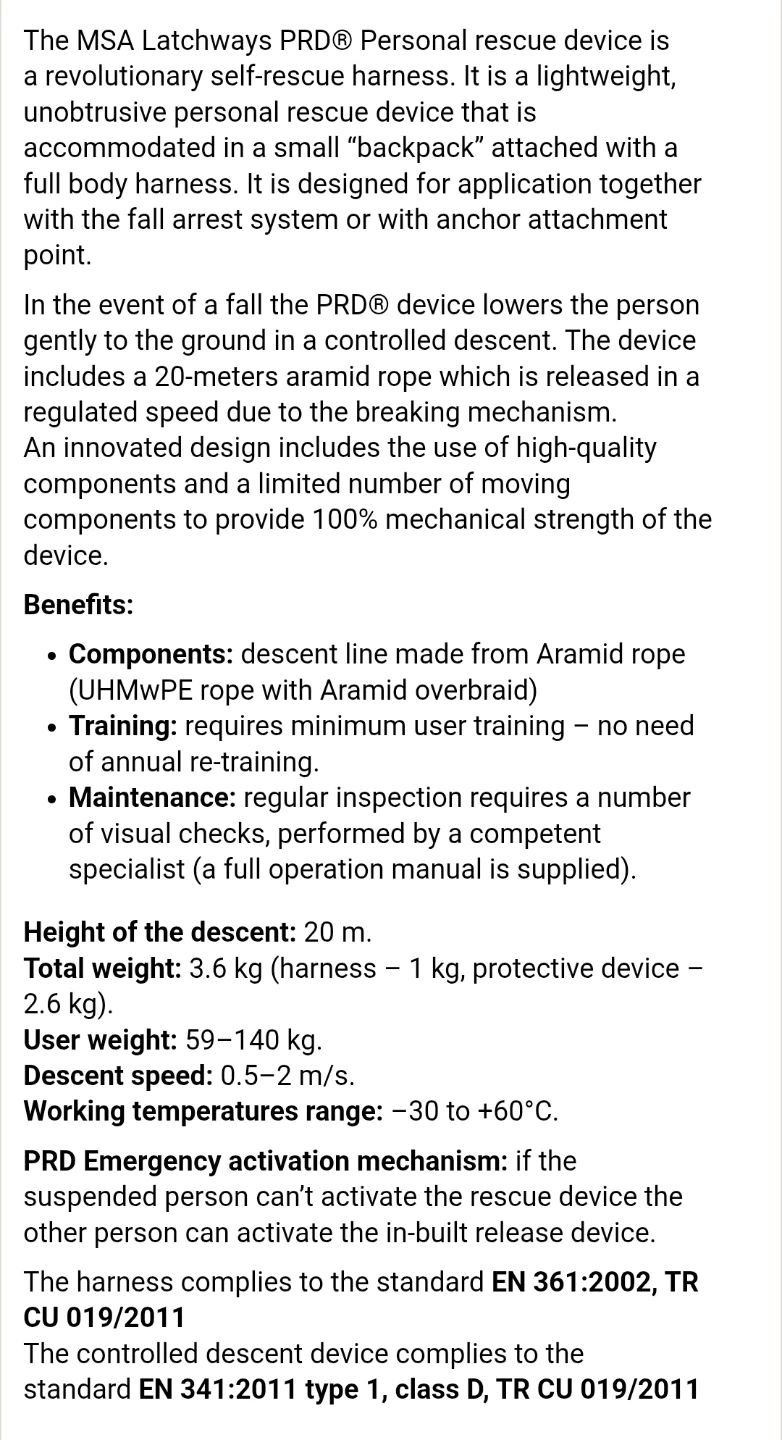 This is an MSA Latchways PRD Personal Rescue Device with a full body harness. It's designed for fall arrest and includes a 20-meter aramid rope. The device weighs 3.6 kg. They're both like brand-new!!!! AWWWESOME DEAL! TAKE BOTH FOR $100 EACH !!! FCFS!!!