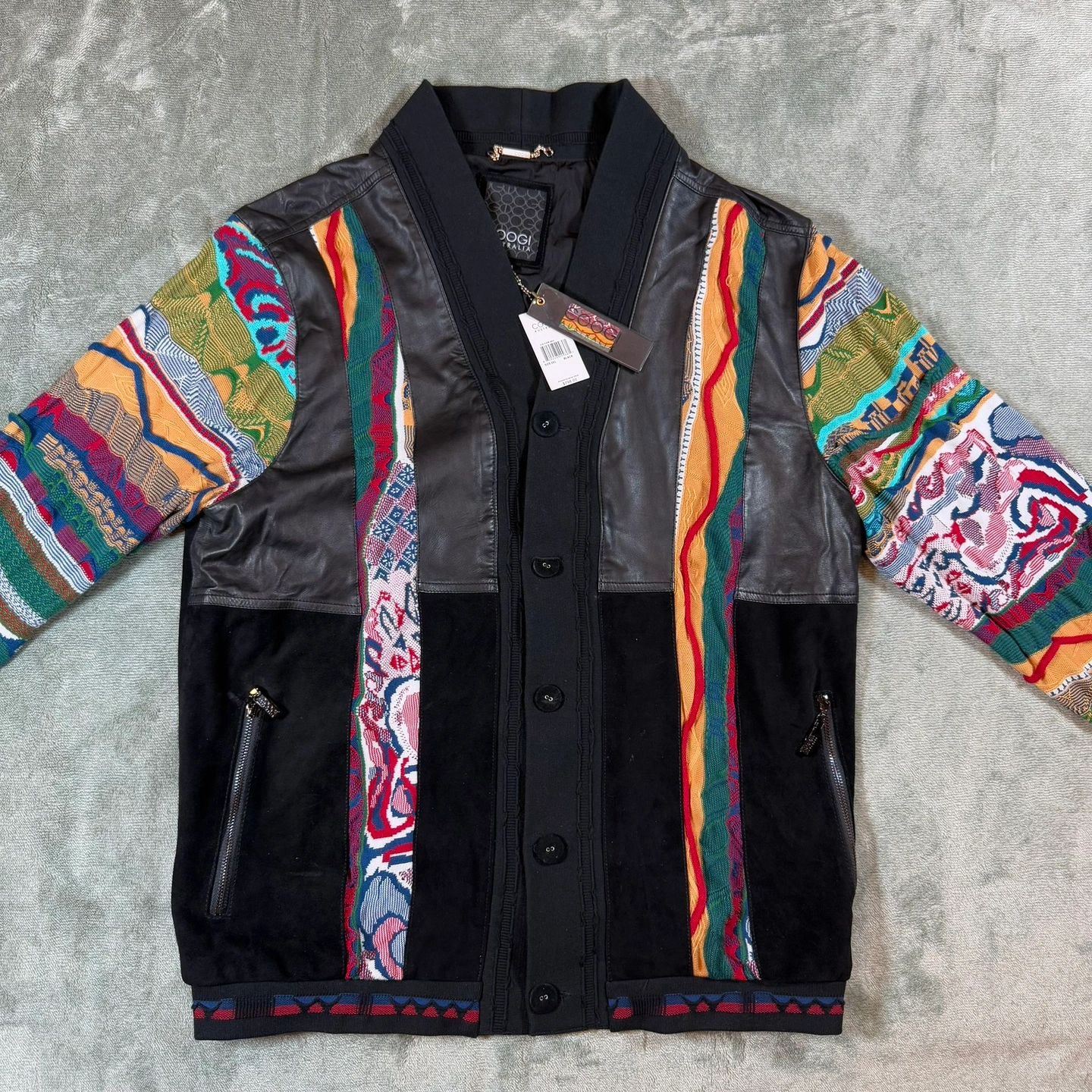 COOGI Leather Suede And Sweater Pieced Cardigan Black Men’s 2XL