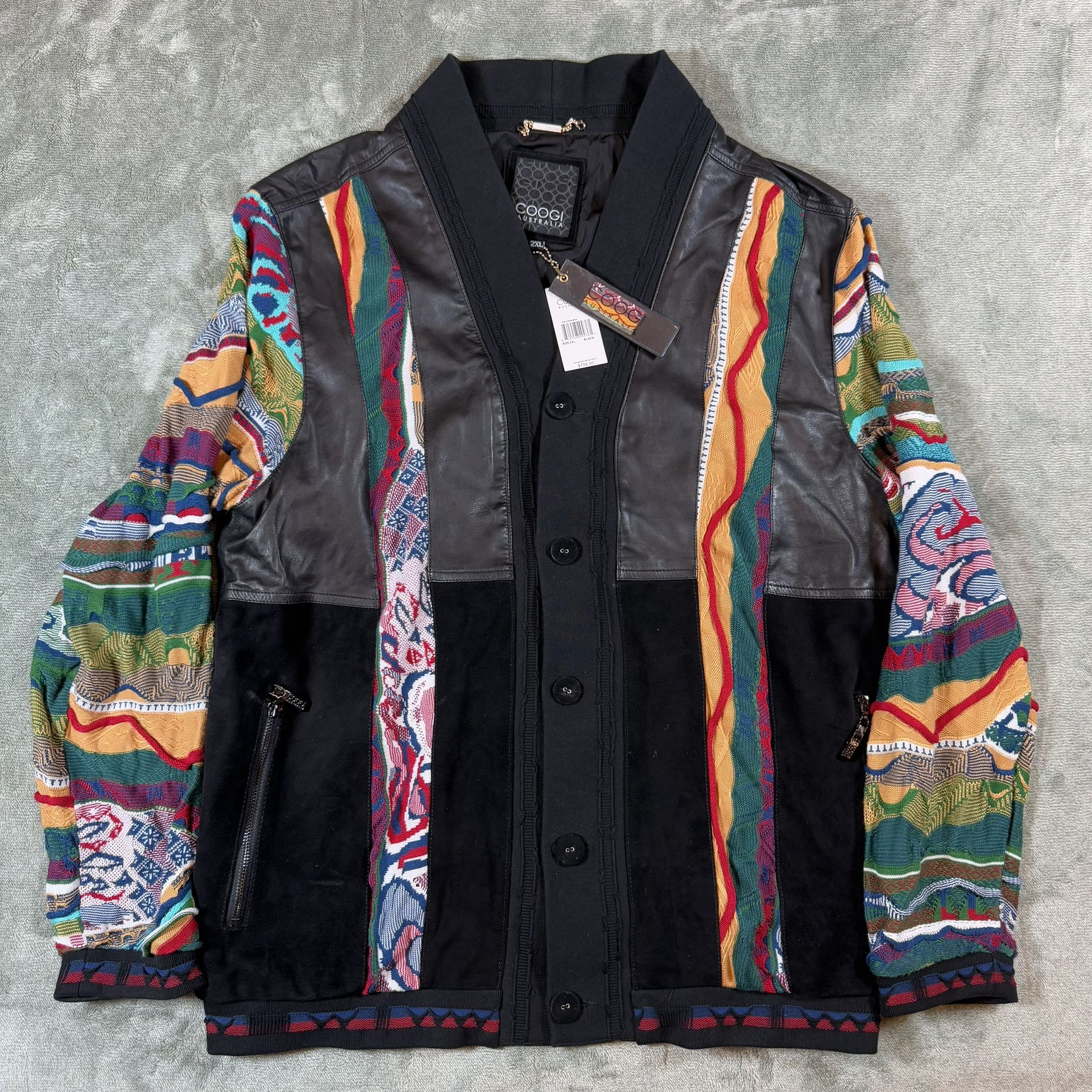 COOGI Leather Suede And Sweater Pieced Cardigan Black Men’s 2XL