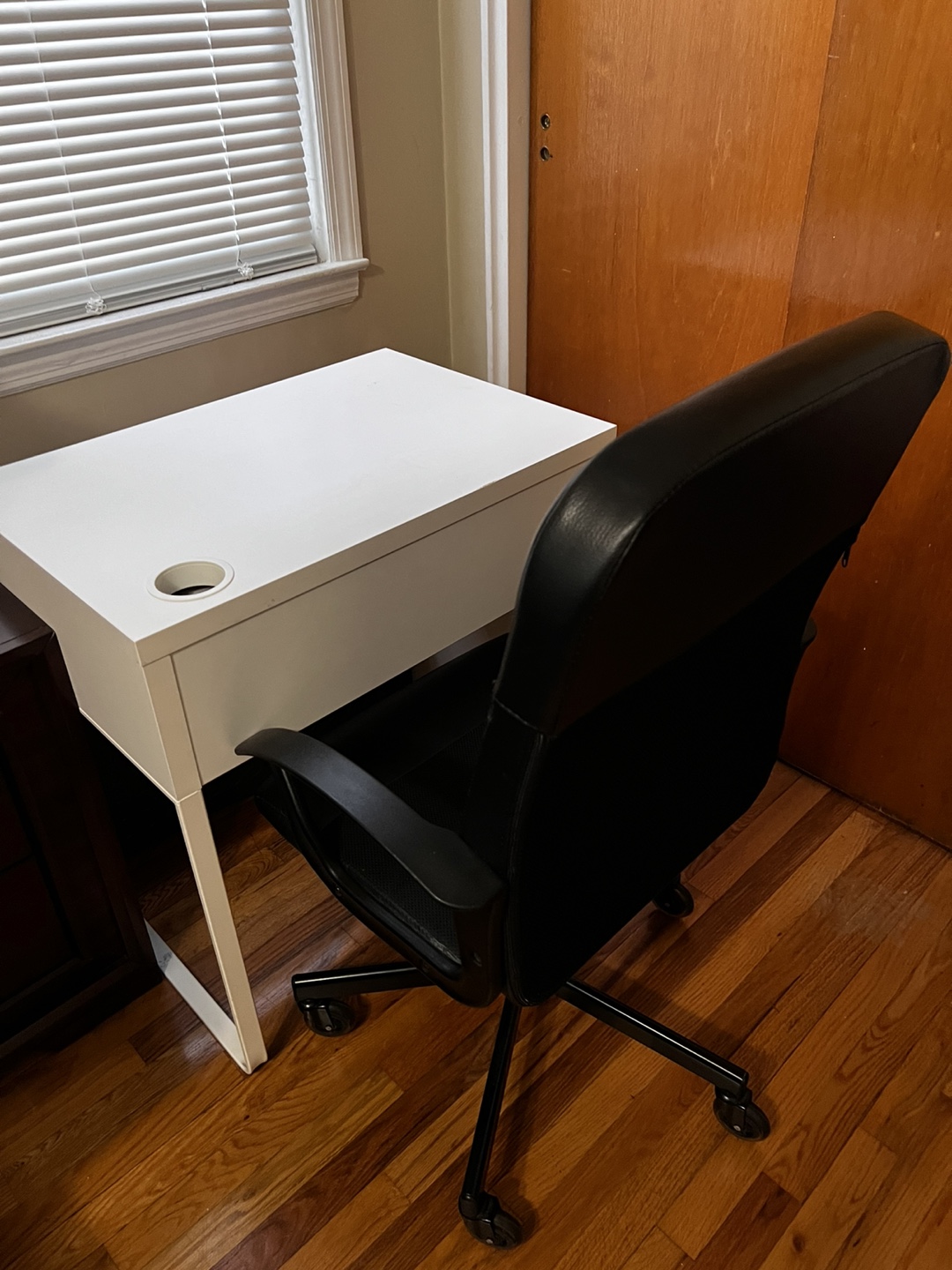 1 / 11 / 1Buy & SellDesk with ChairDesk with Chair$28White desk, with a black rolling office chair. Great for a home office.ConditionGoodWHERE TO MEETCheck LocationView MapSELLERJorgeMaspeth261 review4 chats·2 favorites·152 viewsSEND CHAT TO SELLERHi Jorge! I’m interested in your listing.Hi Jorge! I’m interested in your listing.Get the Karrot app to chatSign In to chat