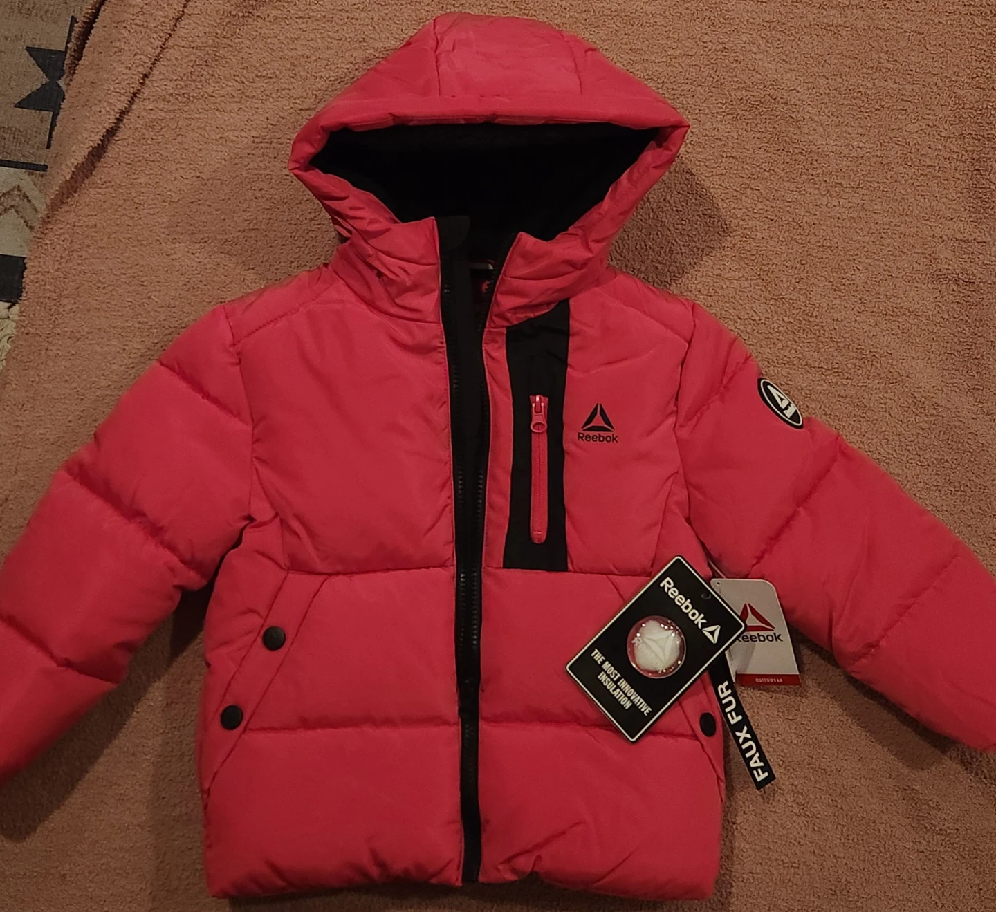 Selling a brand new Reebok puffer jacket in size 4T. It's pink and features faux fur trim. This jacket has the most innovative insulation to keep your little one warm! NEW WITH TAGS.