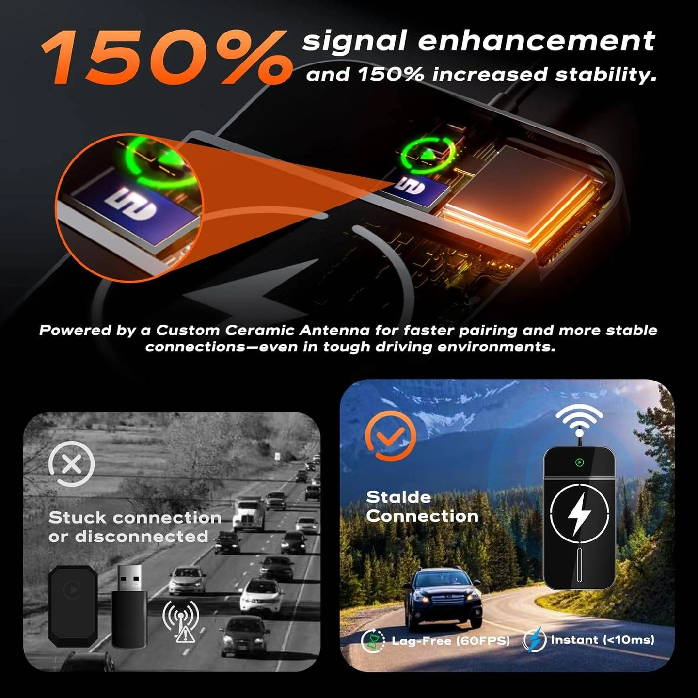 ⚡ 15W Fast Wireless Charging – No More Battery Drain Worries: Many wireless CarPlay adapters rapidly drain your phone battery—FREYSEED solves this with a built-in 15W Qi-certified fast charger. Whether you're navigating, streaming music, or on long calls, your phone stays charged throughout the drive. No more plugging in or watching your battery drop.