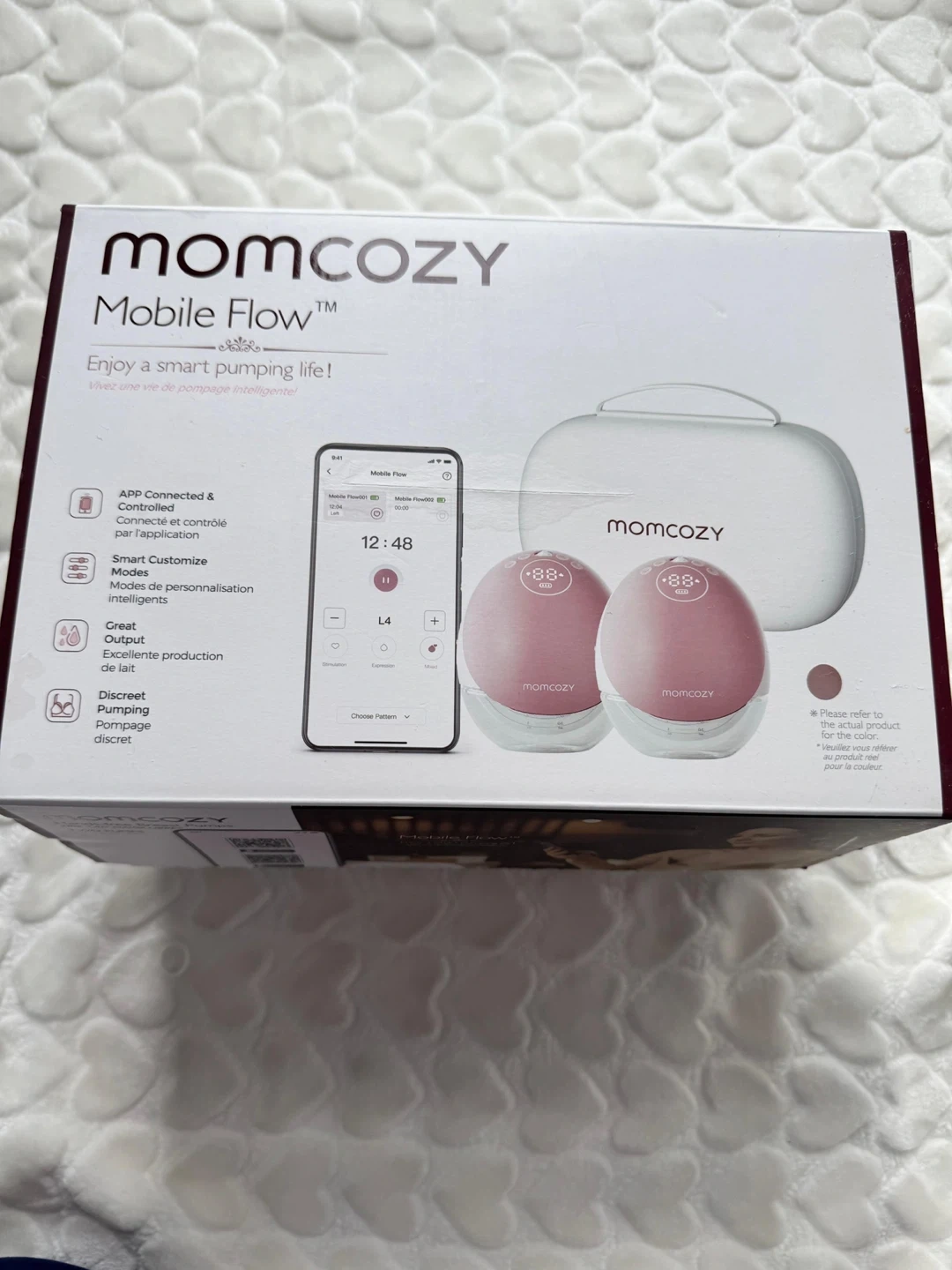 This Momcozy Mobile Flow breast pump is wearable and comes with app connectivity. It includes two milk collectors (150ml each), USB charging cables, and storage lids. This set is pink and includes a charging case.