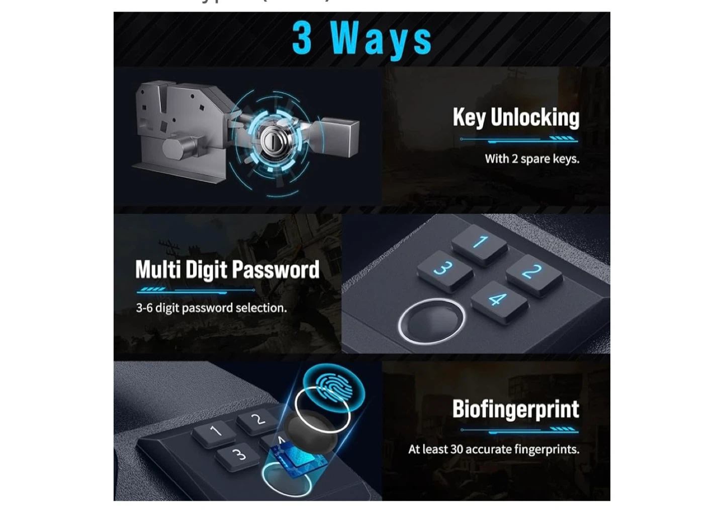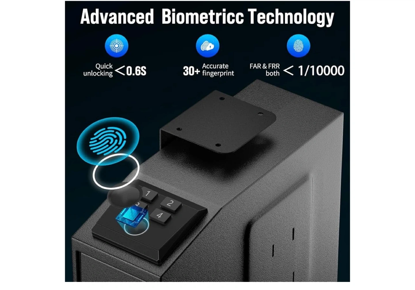 Selling a safe that offers advanced security features! It uses biometric technology for quick unlocking in less than 0.6 seconds and can store at least 30 accurate fingerprints. You can also use a multi-digit password or the included keys for access.