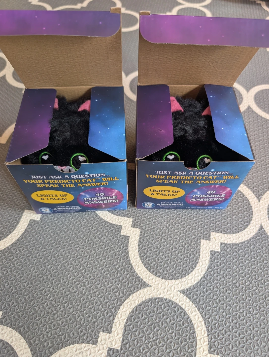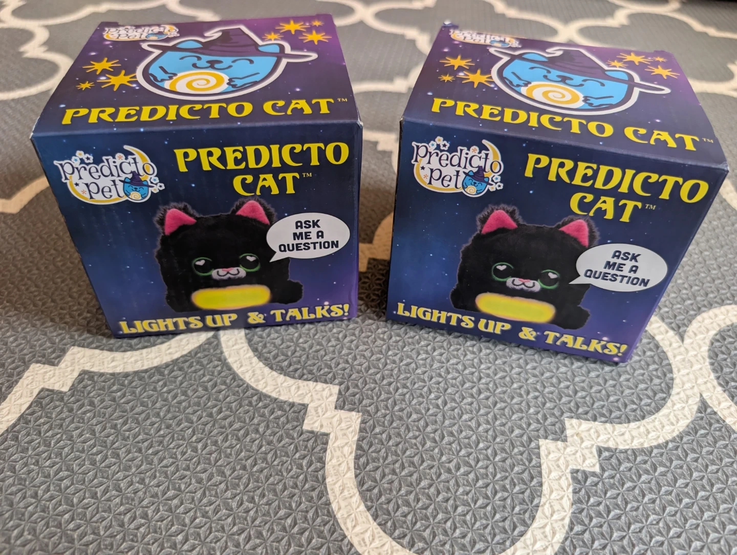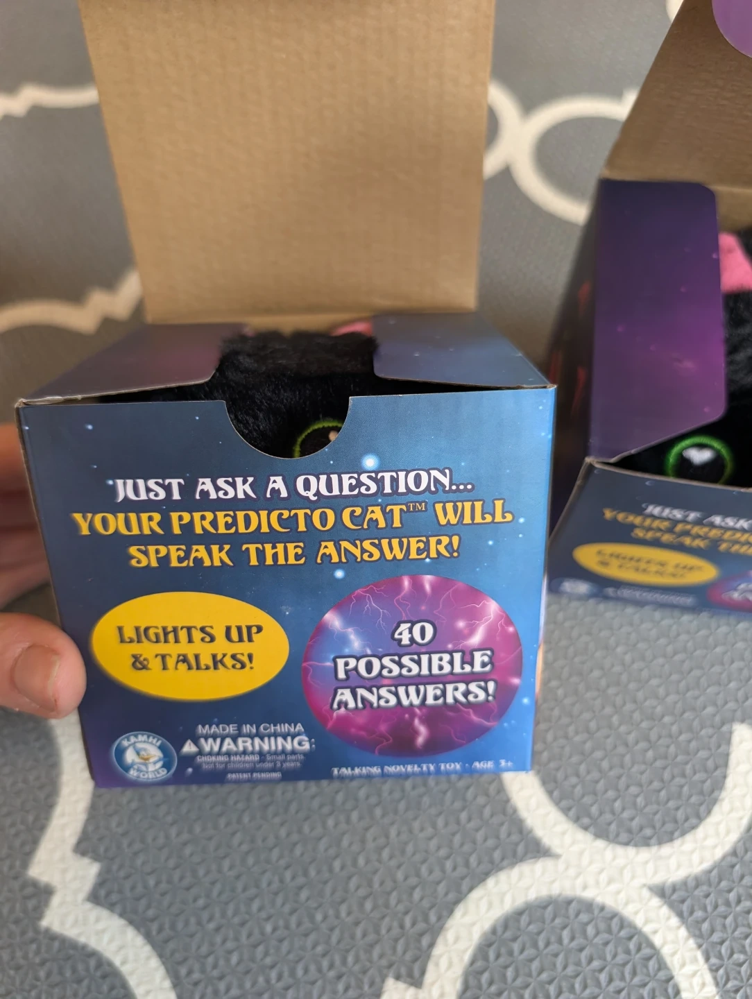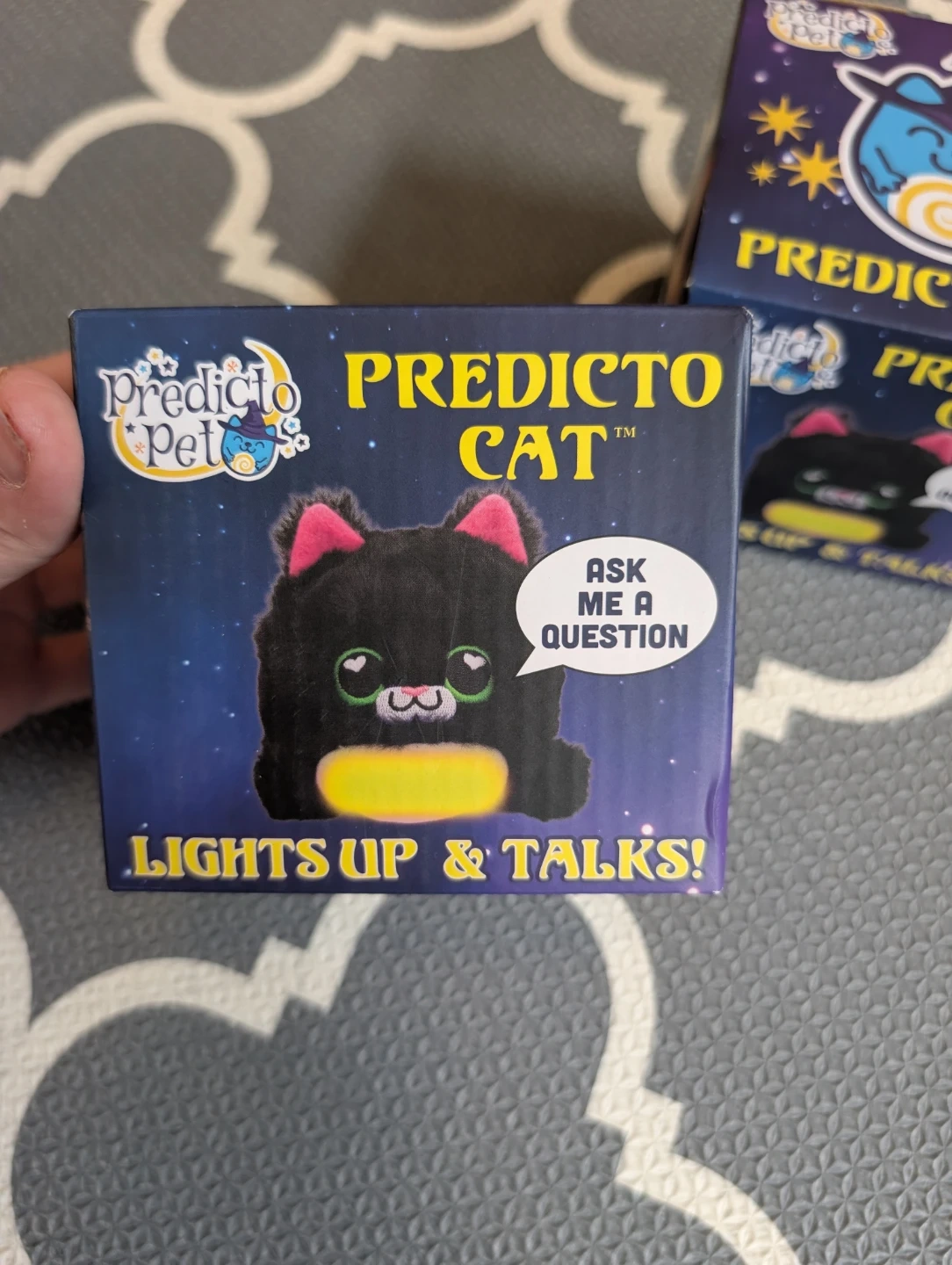 This is the Predicto Cat by Kamhi World, an interactive, fortune-telling toy designed for children ages 3 and up.